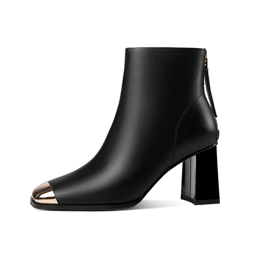 TinaCus Women's Genuine Leather Handmade Chunky Heel Back Zip Up Square Toe Ankle Boots
