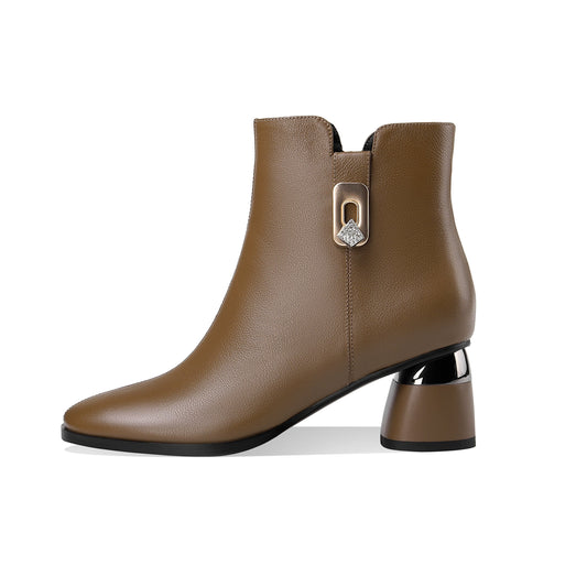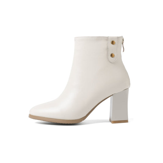 TinaCus Women's Genuine Leather Pointed Toe Handmade Back Zip Block Mid Heel Trendy Ankle Boots