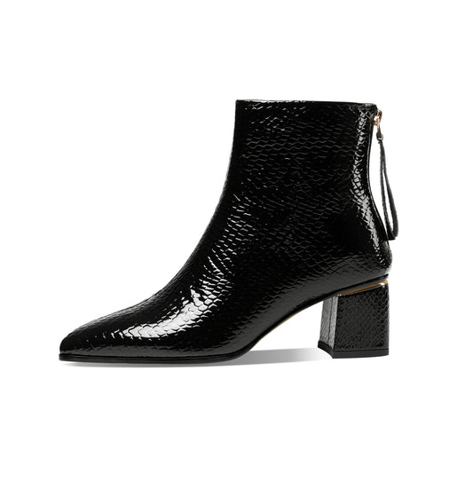 TinaCus Women's Patent Leather Handmade High Heel Pointed Toe Back zip Up Modern Buckle Ankle Booties
