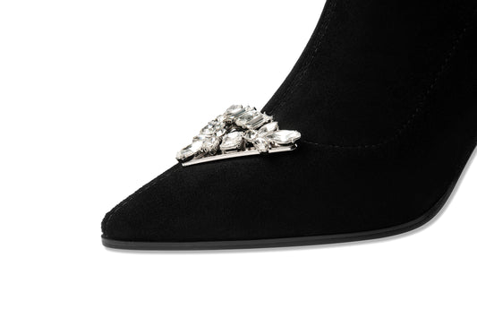 TinaCus Women's Suede Leather Handmade Stretch Side Zip Up Décor Crystal Pointed Toe High Block Heel Ankle Boots