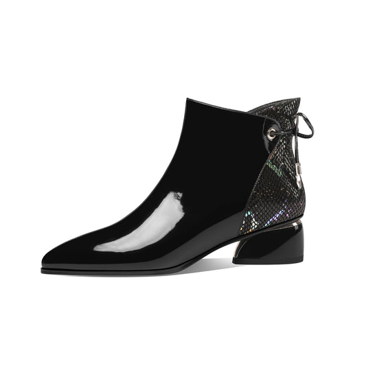 TinaCus Patent Leather Women's Handmade Comfortable Block Heel Side Zip Up Pointed Toe Cute Bowtie Ankle Booties
