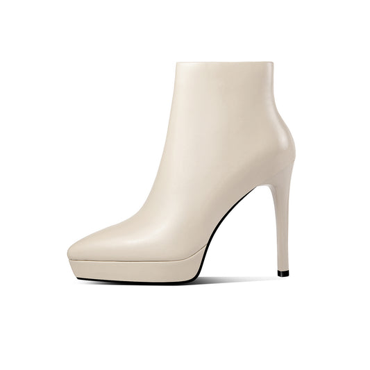 TinaCus Women's Genuine Leather Pointed Toe Handmade Platform Side Zipper Stiletto High Heels Chic Ankle Boots