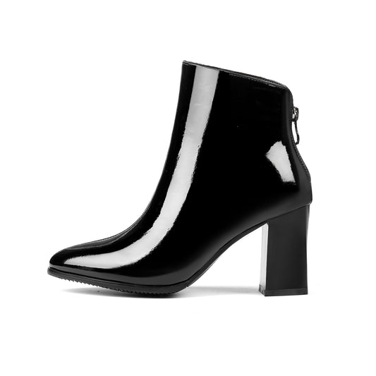 TinaCus Patent Leather Round Toe Chunky Heel Plus-size Handmade Ankle Boots