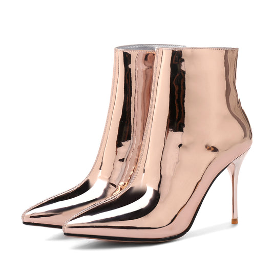 TinaCus Patent Leather Pointed Toe High Stiletto Heel Handmade Fashion Ankle Boots