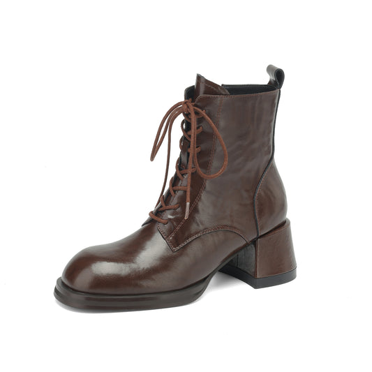 TinaCus Women's Handmade Genuine Leather Block Heel Round Toe Boots (US7.5)