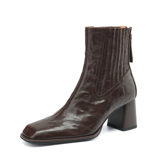 TinaCus Handmade Women's Genuine Leather Square Toe Block Heel Back Zip Ankle Boots
