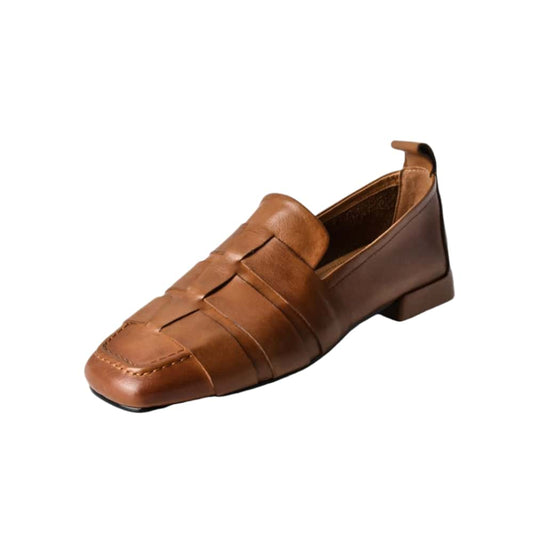 TinaCus Handmade Women's Soft Leather Square Toe Braided Style Slip On Loafers Flats Shoes