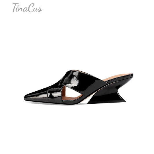TinaCus Women's Pointed Toe Glossy Patent Leather Handmade Mid Heels Chic Sandal Slippers