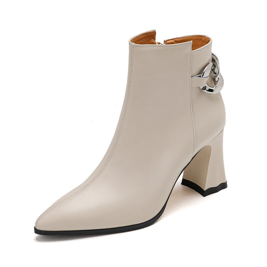 TinaCus Women's Genuine Leather Back Chain Handmade Chunky Heel Zip Up Ankle Boots