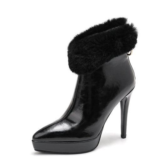 TinaCus Women's Genuine Leather Fur Stiletto Heel Handmade Platform Zip Up Ankle Boots