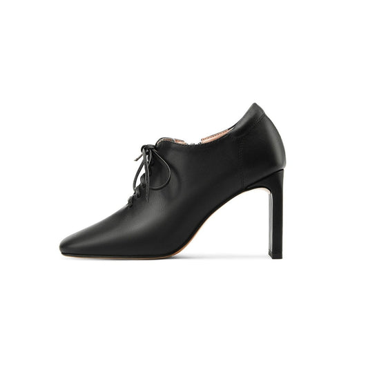 TinaCus Women's Genuine Leather Handmade Square Toe Lace Up Side Zip High Chunky Heel Plus-size Pumps