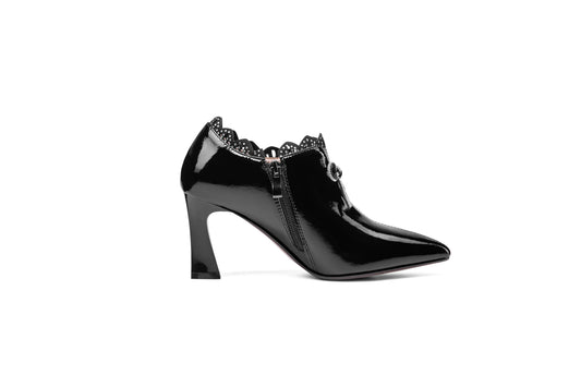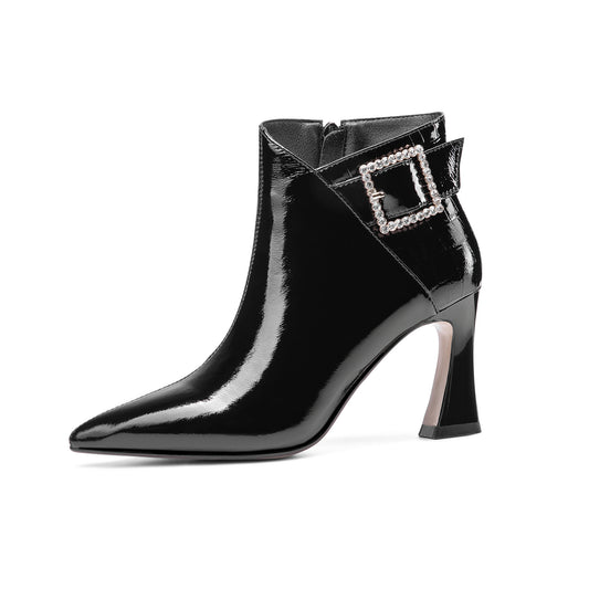 TinaCus Women's Patent Leather Handmade High Heel Pointed Toe Back zip Up Modern Buckle Ankle Booties