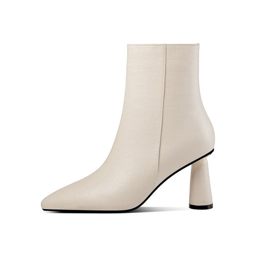TinaCus Genuine Leather Women's Handmade Cone Heel Side zip Up Pointed Toe Elegant Ankle Booties