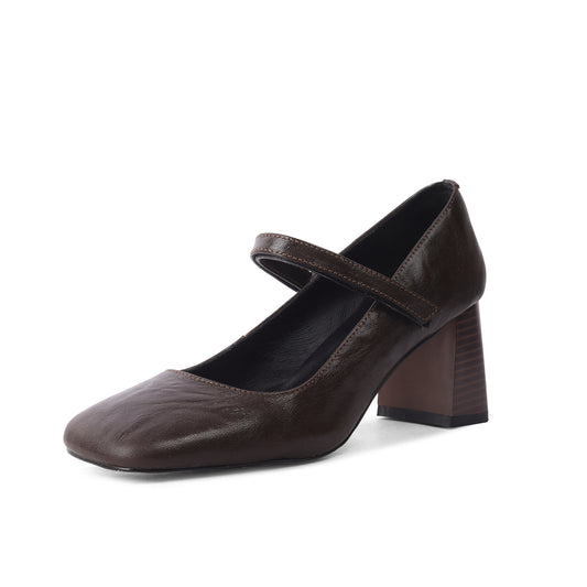 TinaCus Women's Handmade Genuine Leather Square Toe Block Heel Mary Jane Pumps