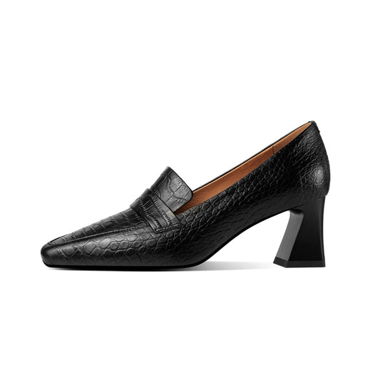TinaCus Women's Handmade Genuine Leather Square Toe Slip On Chunky Heel Pumps