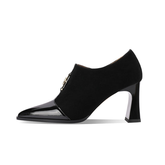 TinaCus Women's Handmade Suede Patent Leather Pointed Toe Side Zip High Heel Pumps