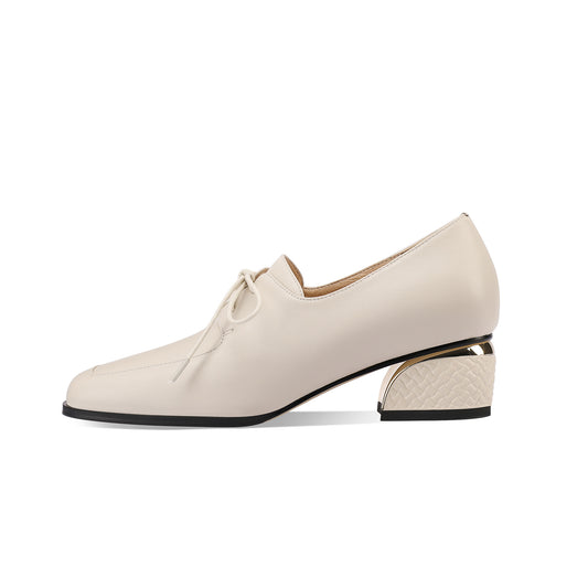 TinaCus Women's Handmade Genuine Leather Round Toe Lace Up Block Heel Pumps