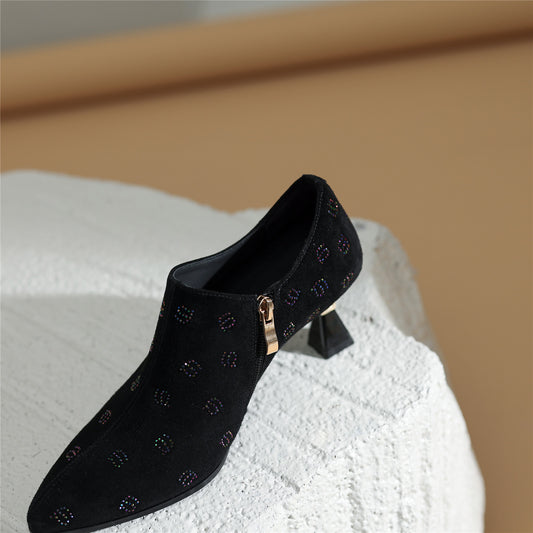 TinaCus Women's Handmade Suede Leather Zip Up Mid Heel Pumps Shoes