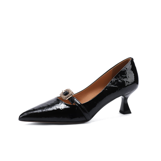 TinaCus Women's Handmade Patent Leather Glitter Rhinestone Buckle Mid Heel Pumps