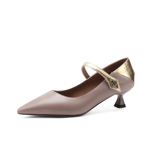 TinaCus Handmade Leather Women's pointed Toe mid Heel Buckle Pumps