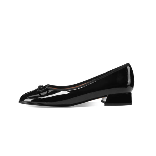 TinaCus Women's Handmade Patent Leather Round Toe Bowtie Slip On Heeled Pumps