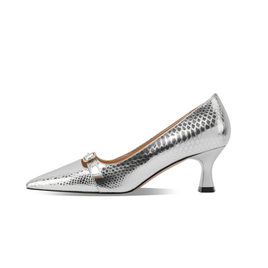 TinaCus Women's Handmade Genuine Leather Snakeskin Pointed Toe Side Zip Stiletto Heel Pumps