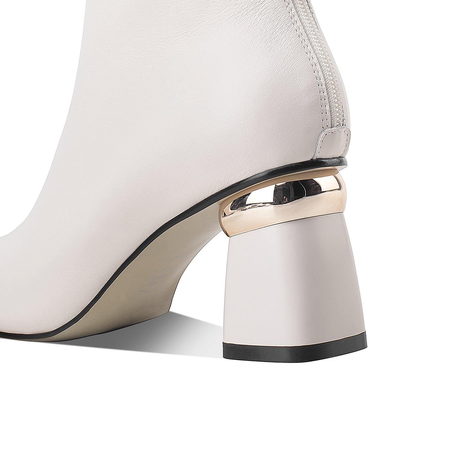 Fashion ankle boots feature in genuine leather,back zipper and mid block heel.Soft insole could make you feel comfortable in every step.