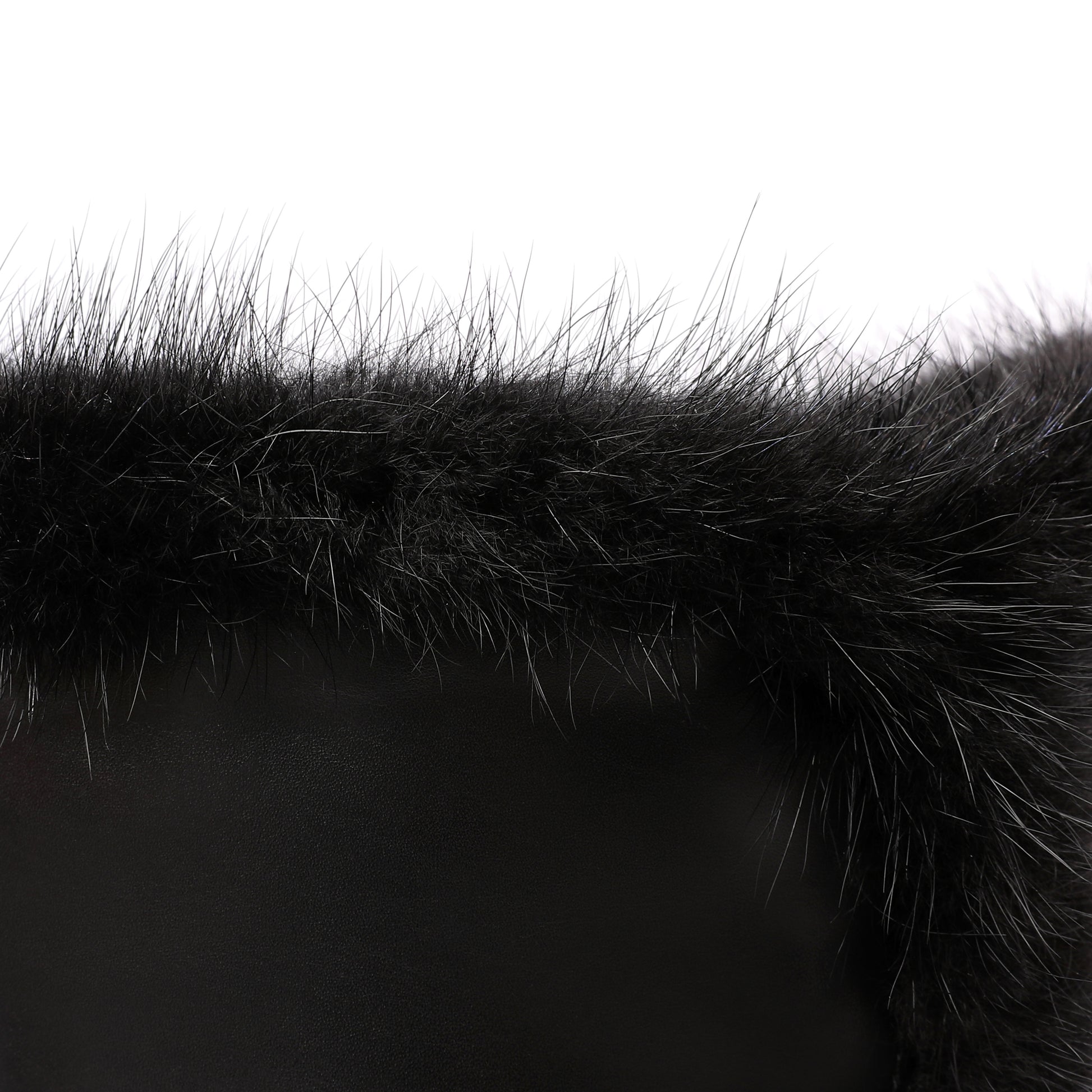 TinaCus Handmade Women's Genuine Leather Spool Heel Side Zip Up Black Mid-Calf Boots with Fur And Chic Belt