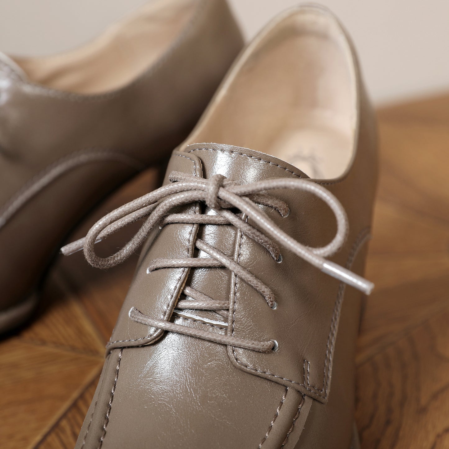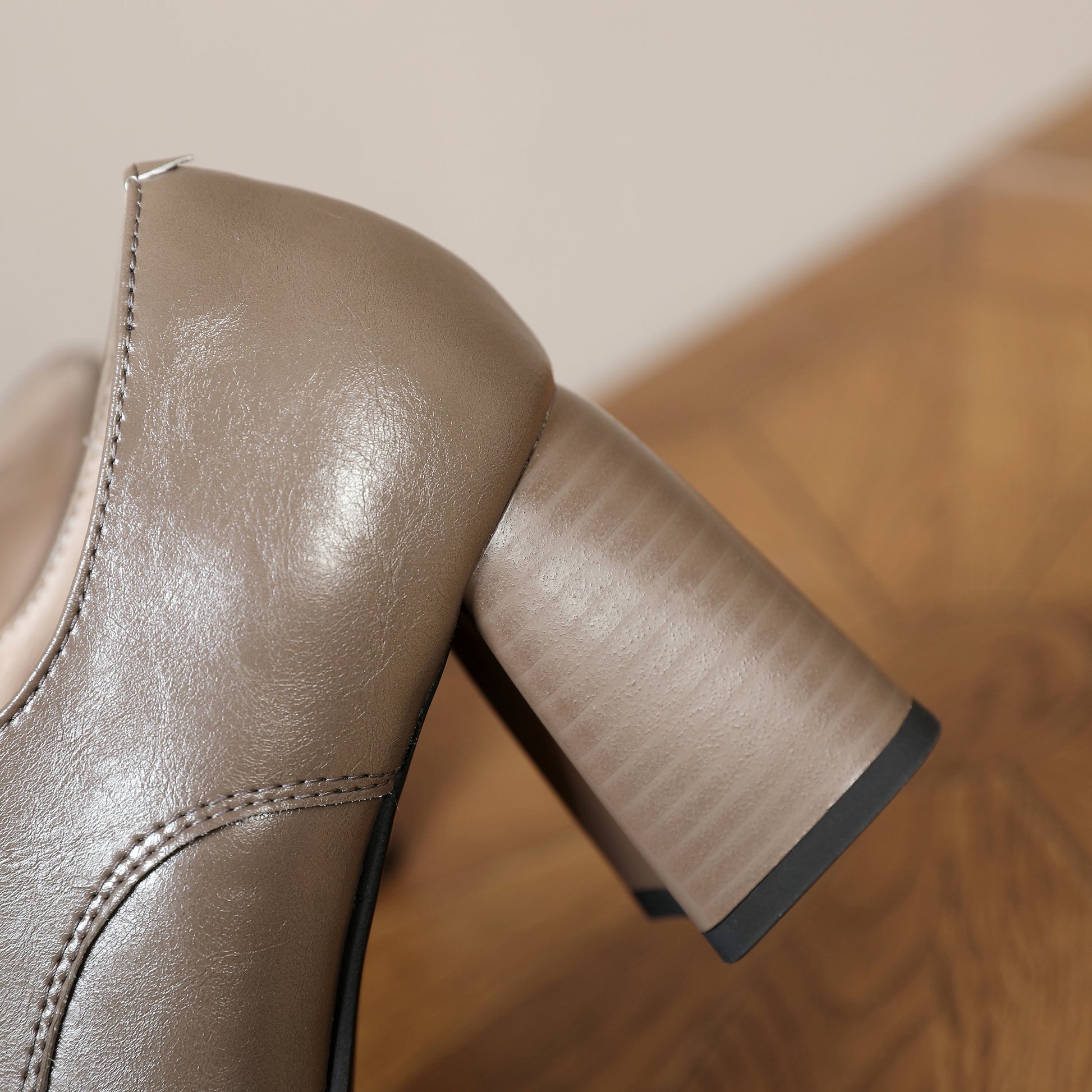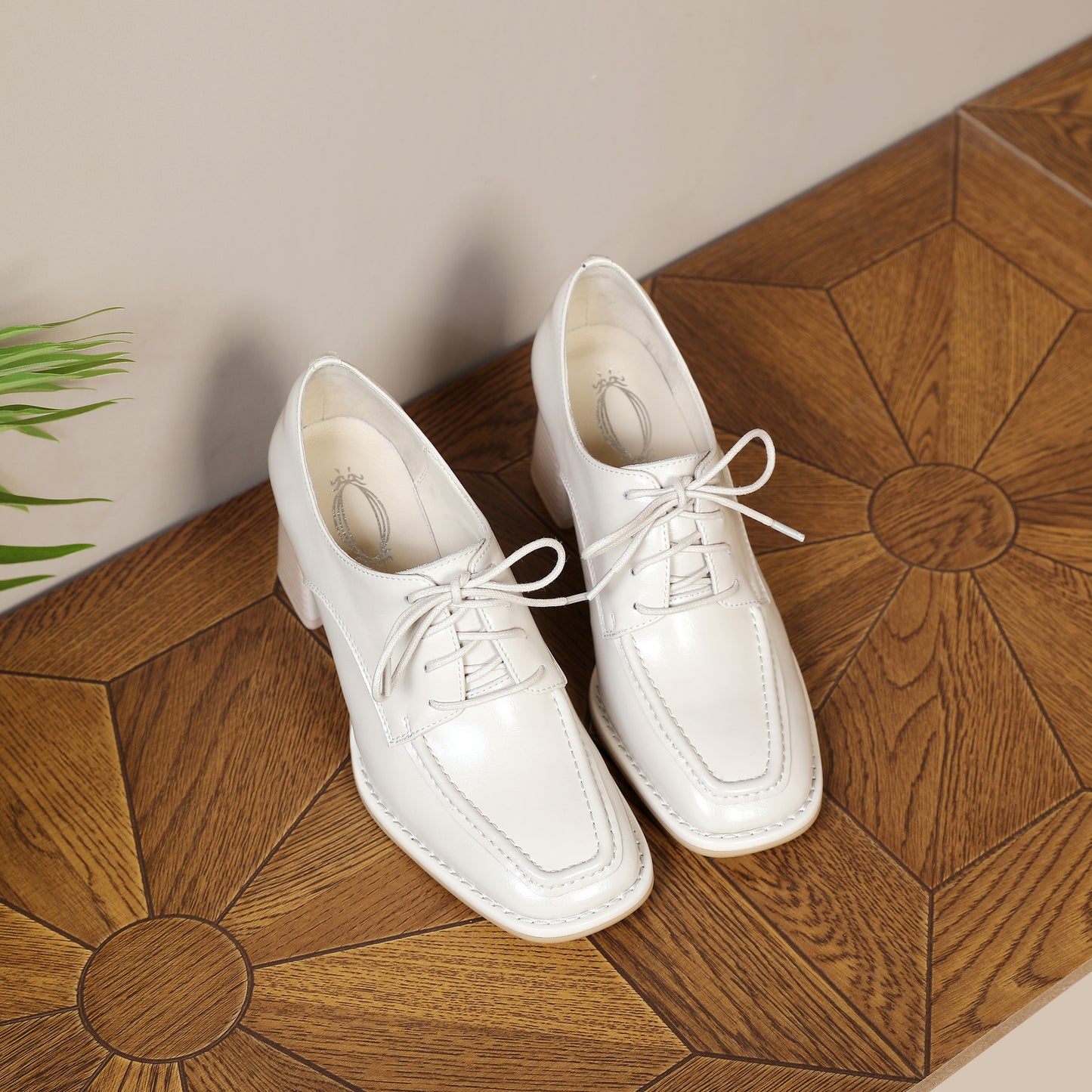 Genuine leather pumps shoes designed with square toe, lace up and chunky heels to keep up with fashion trend.