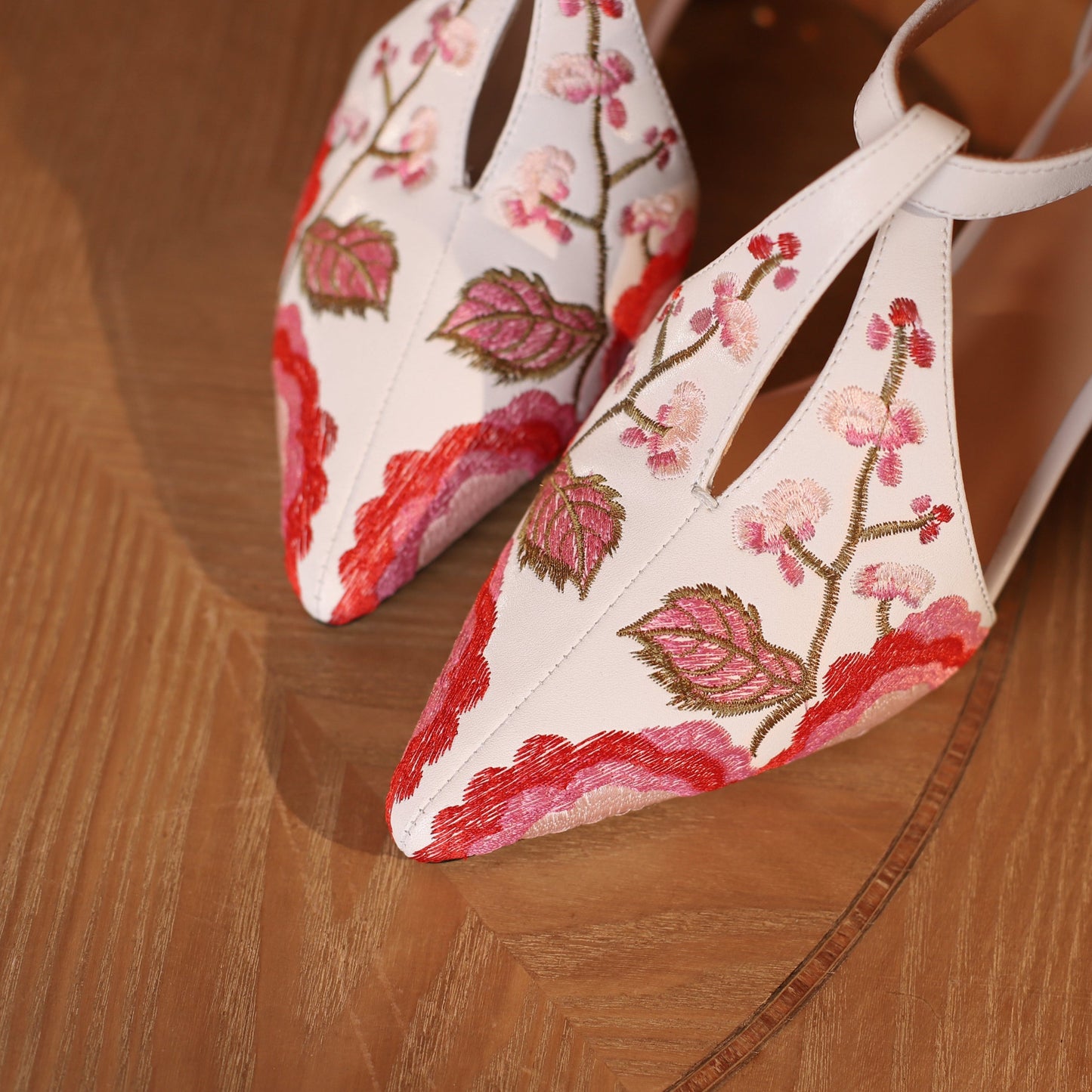 TinaCus Women's Pointed Toe Embroidered Floral Print Genuine Leather Handmade Buckle Chunky Heel Sandal Pumps