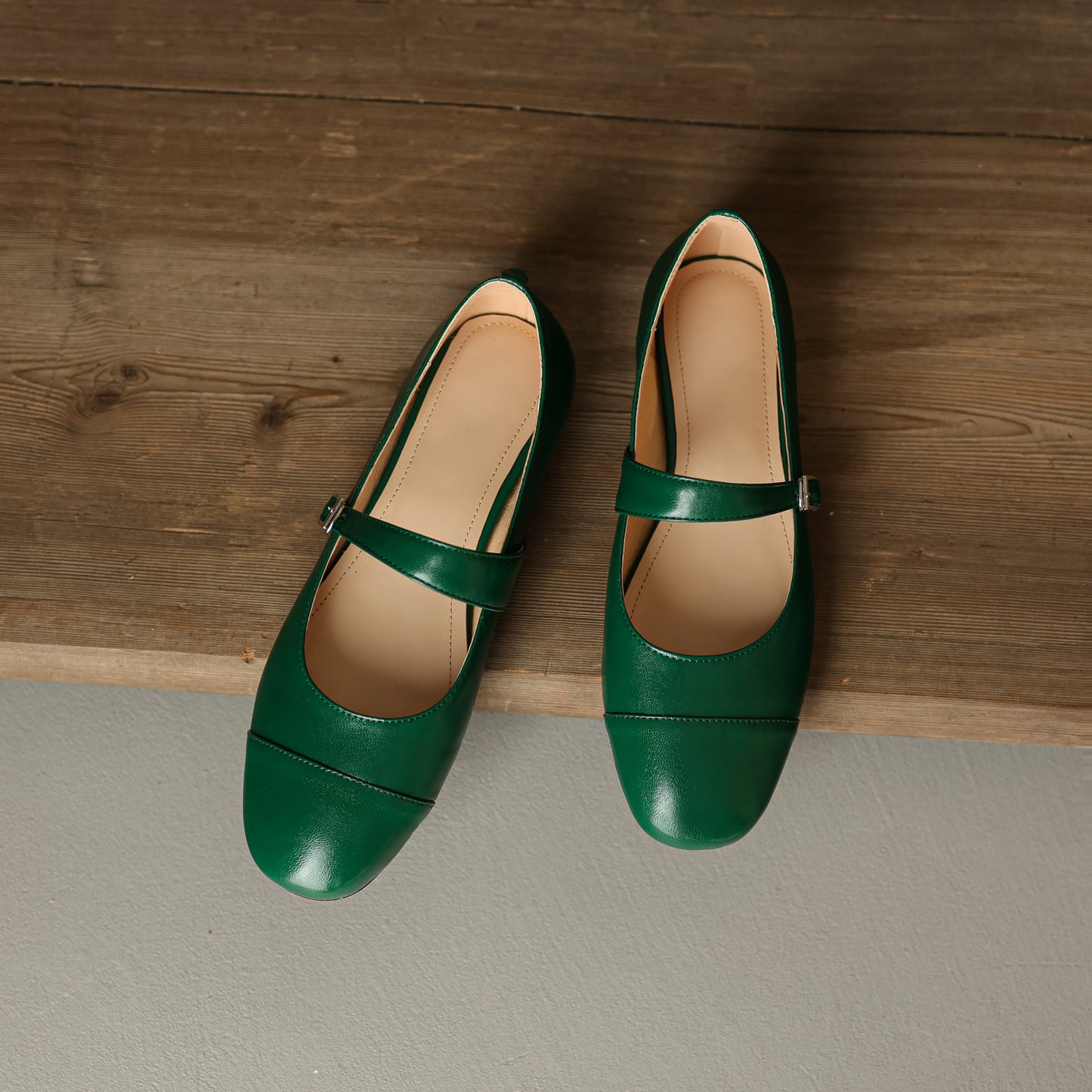 Flat mary jane shoes feature in genuine leather, round toe,flat and buckle closure.Soft insole could make you feel comfortable.