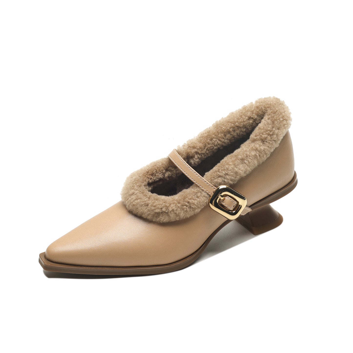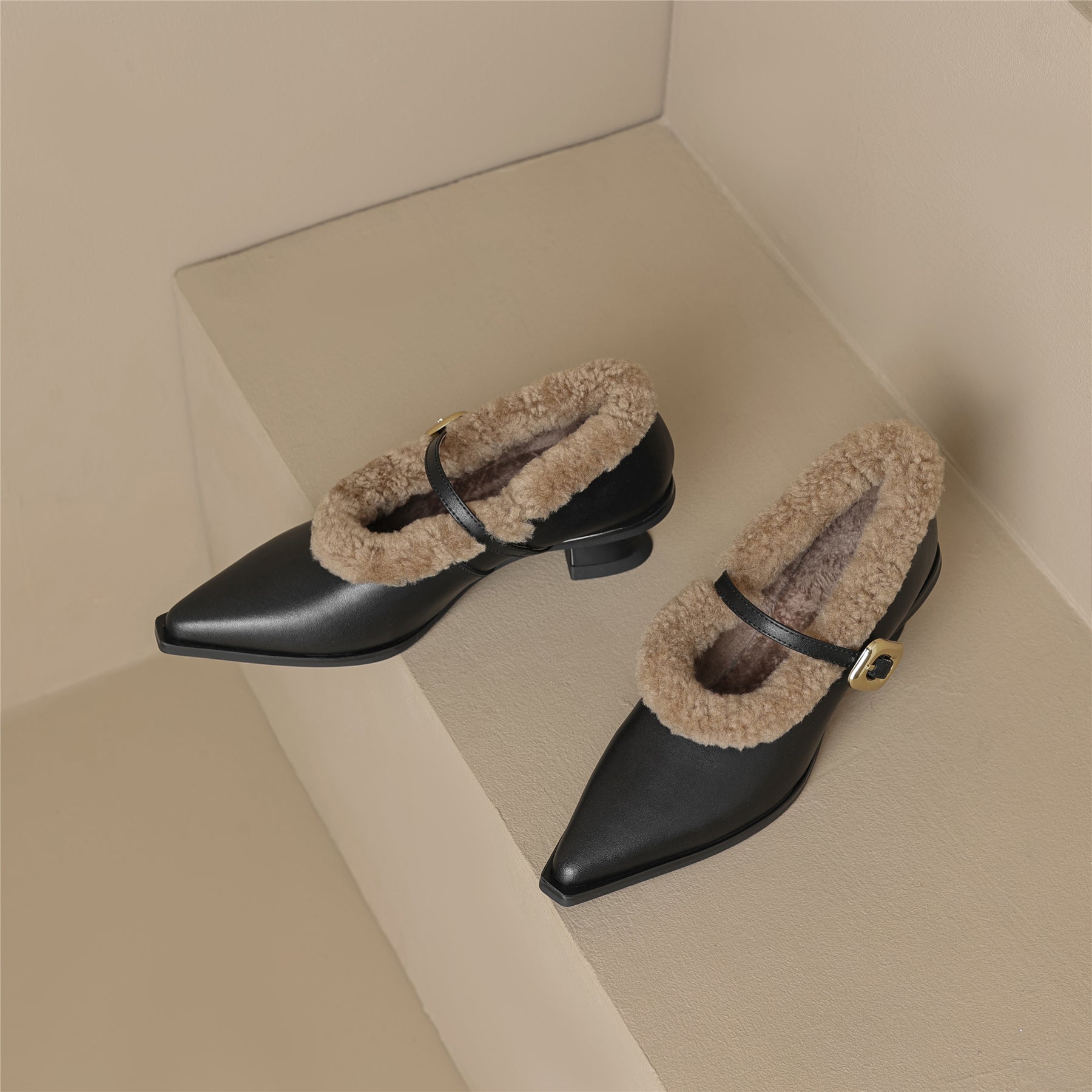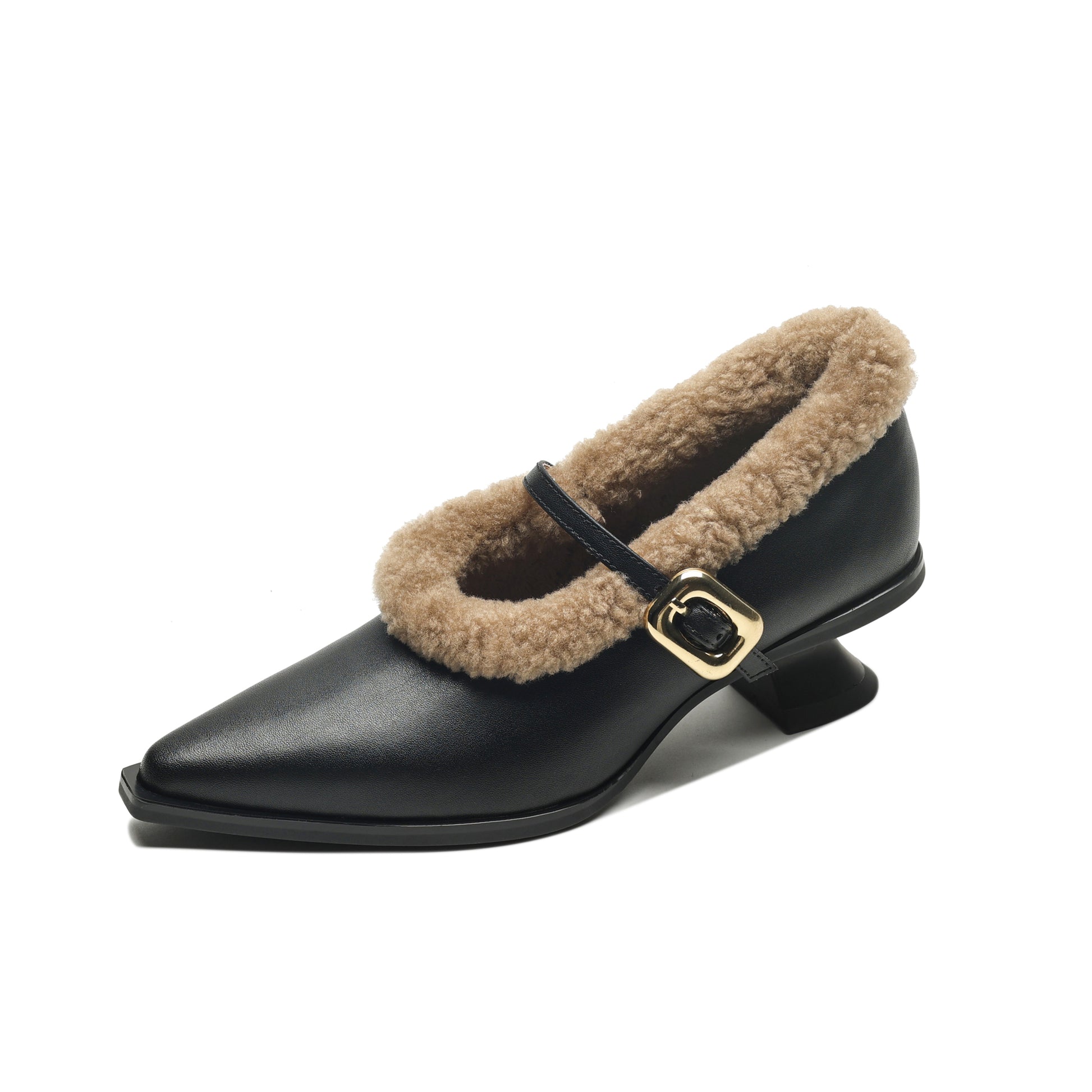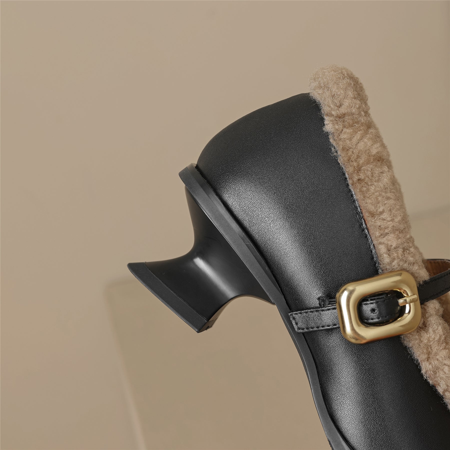 TinaCus Handmade Women's Genuine Leather Fur Design Buckle Mary Jane Pumps Shoes