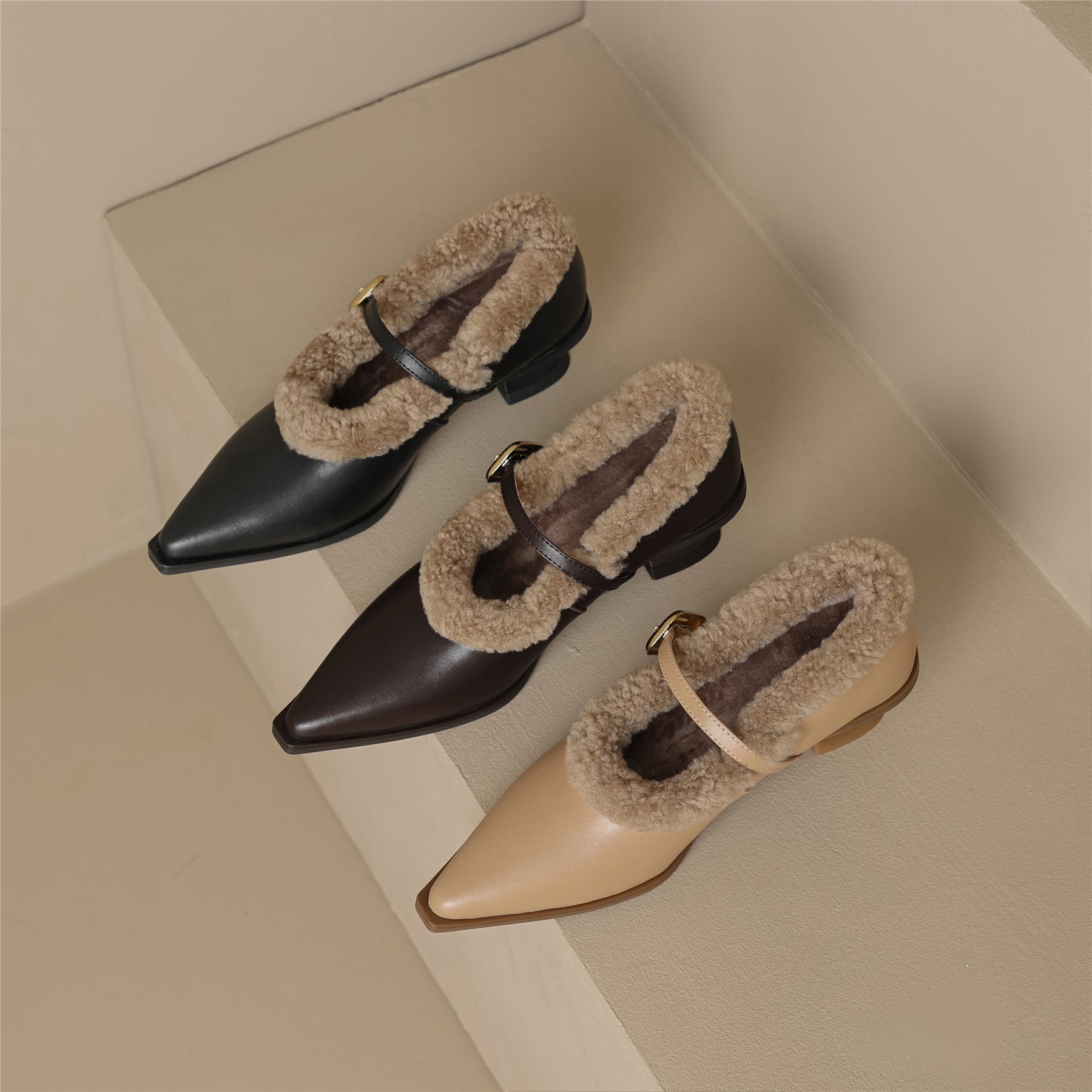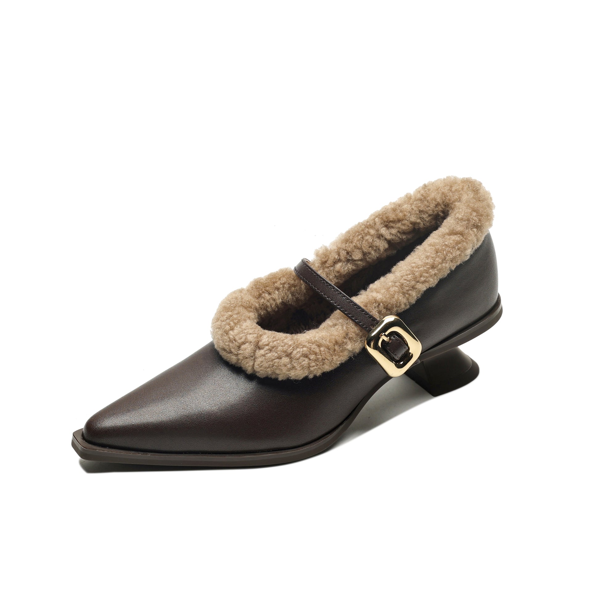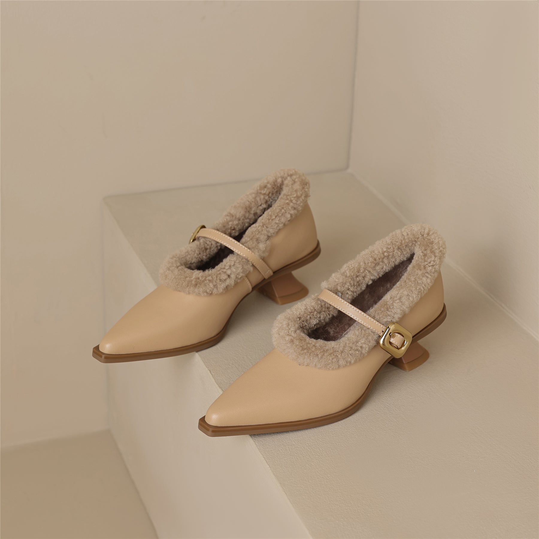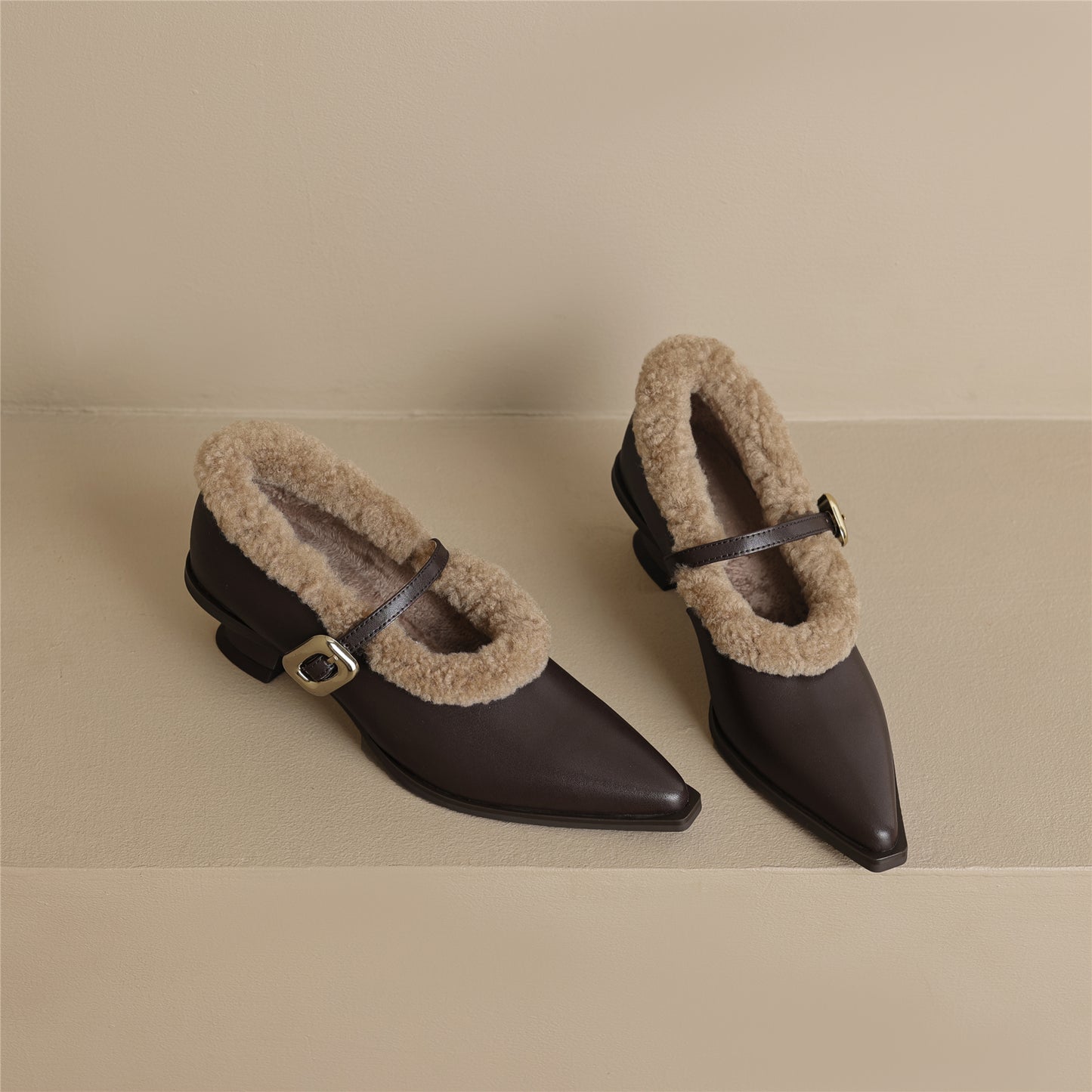 TinaCus Handmade Women's Genuine Leather Fur Design Buckle Mary Jane Pumps Shoes