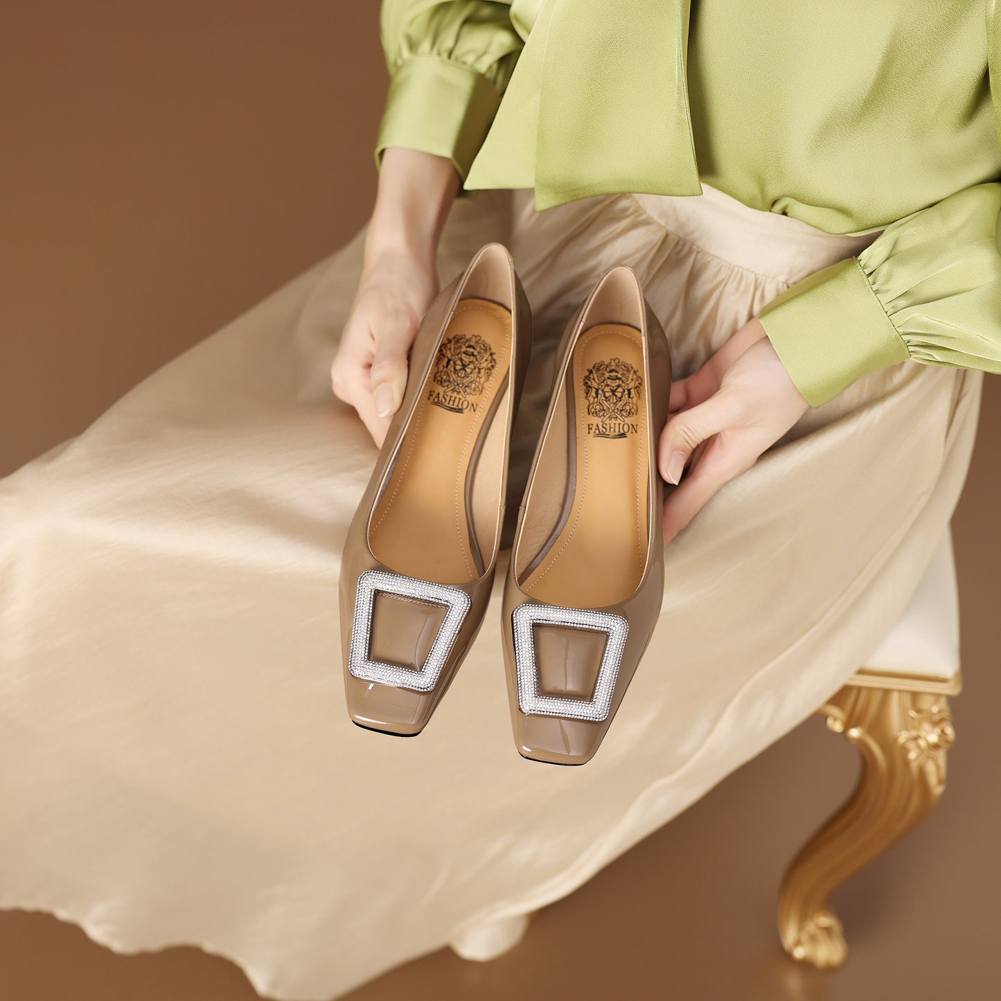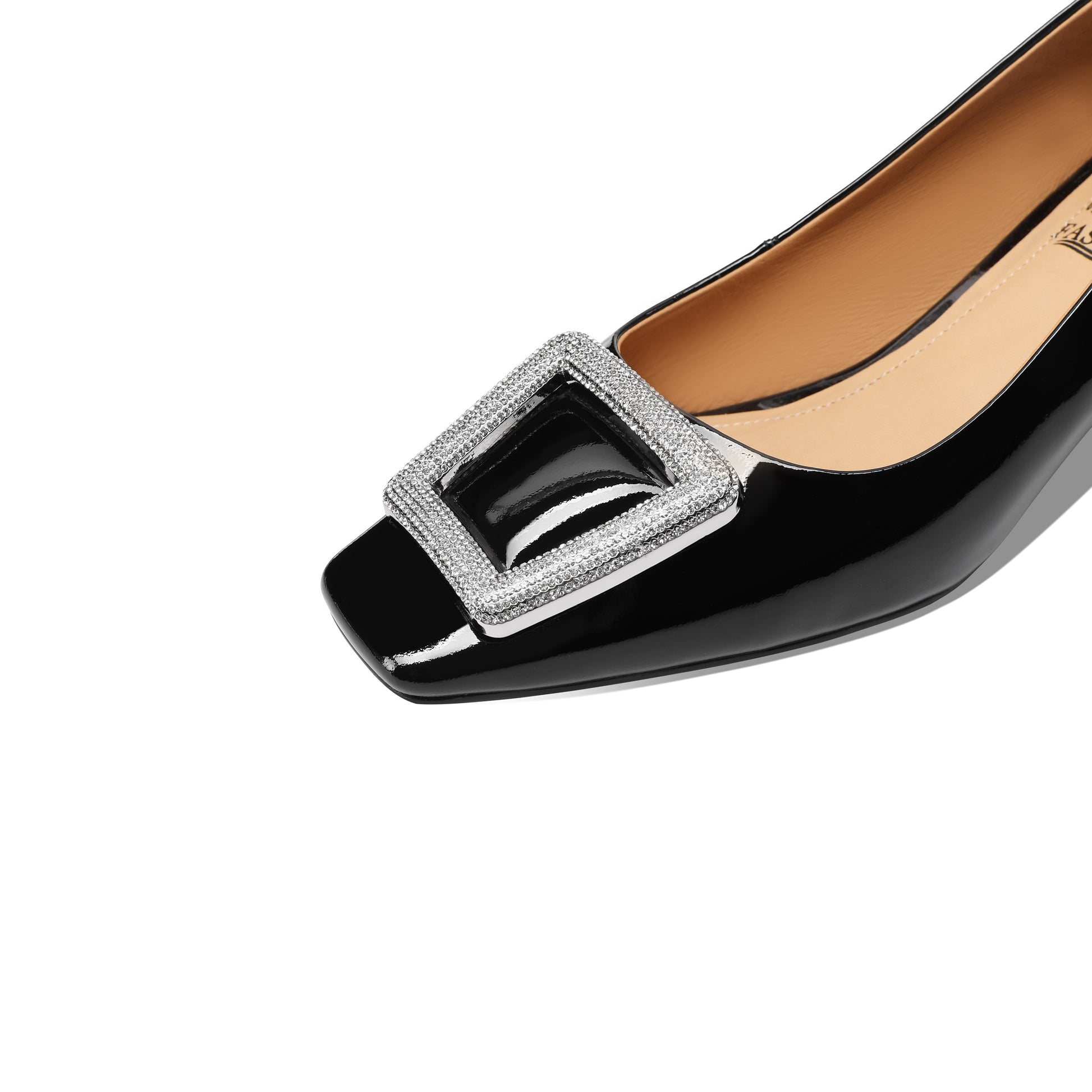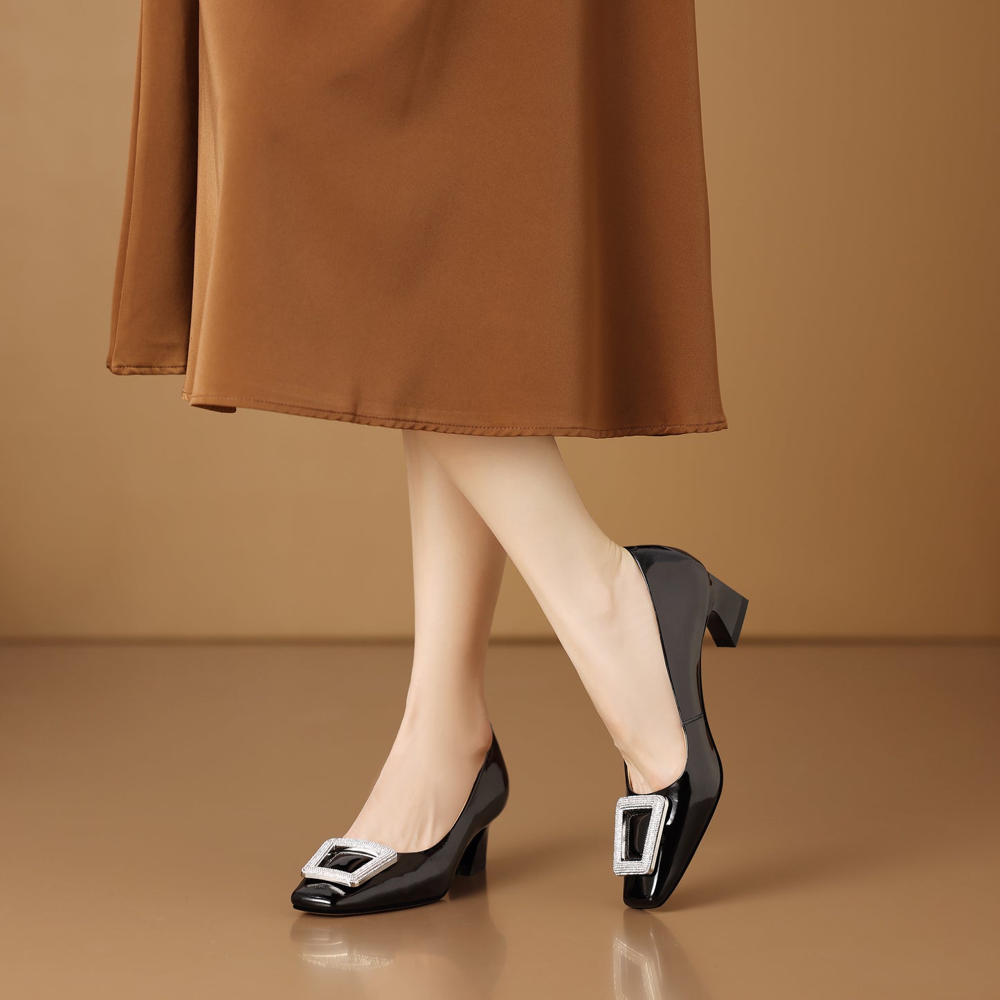 TinaCus Handmade Patent Leather Women's Buckle Square Toe Pumps