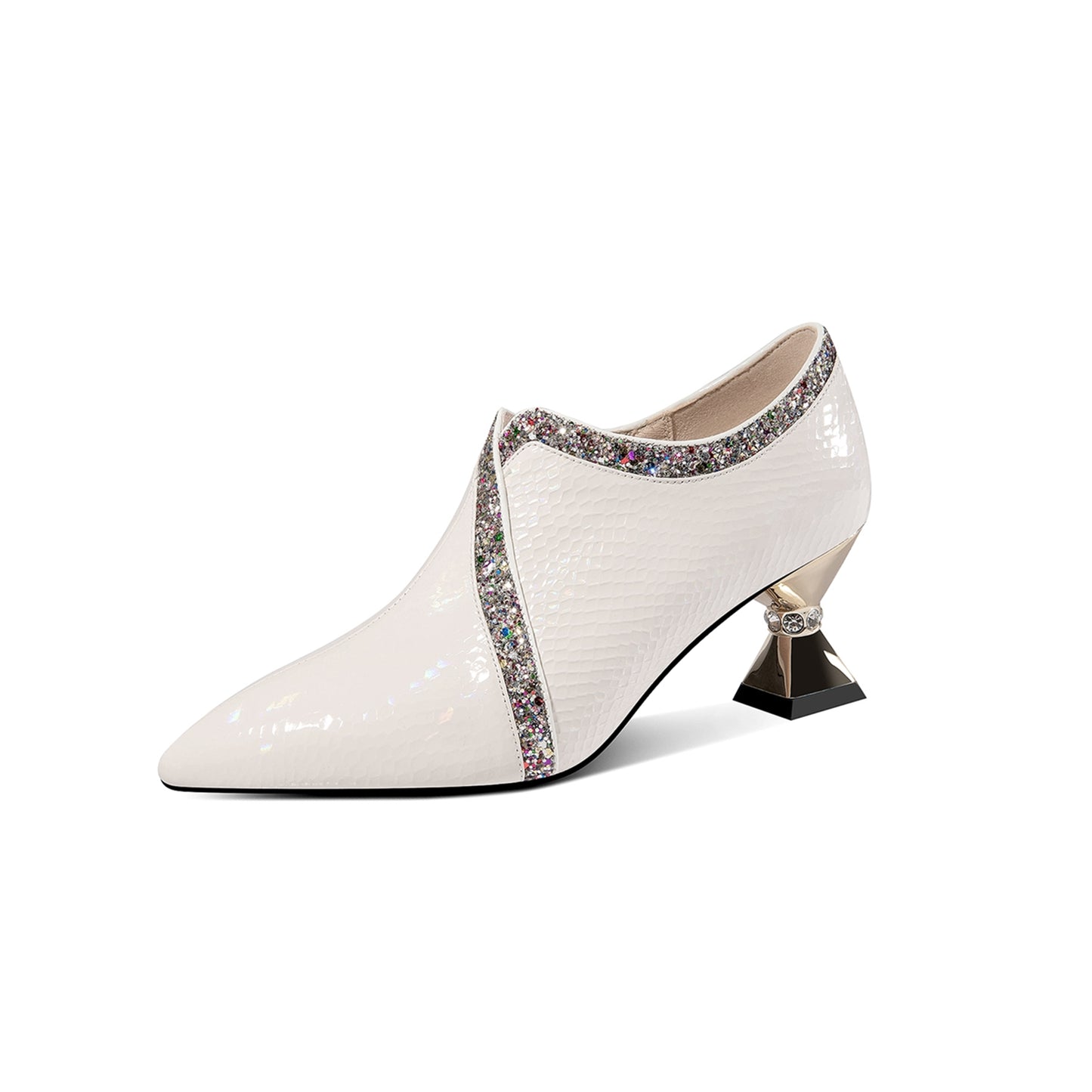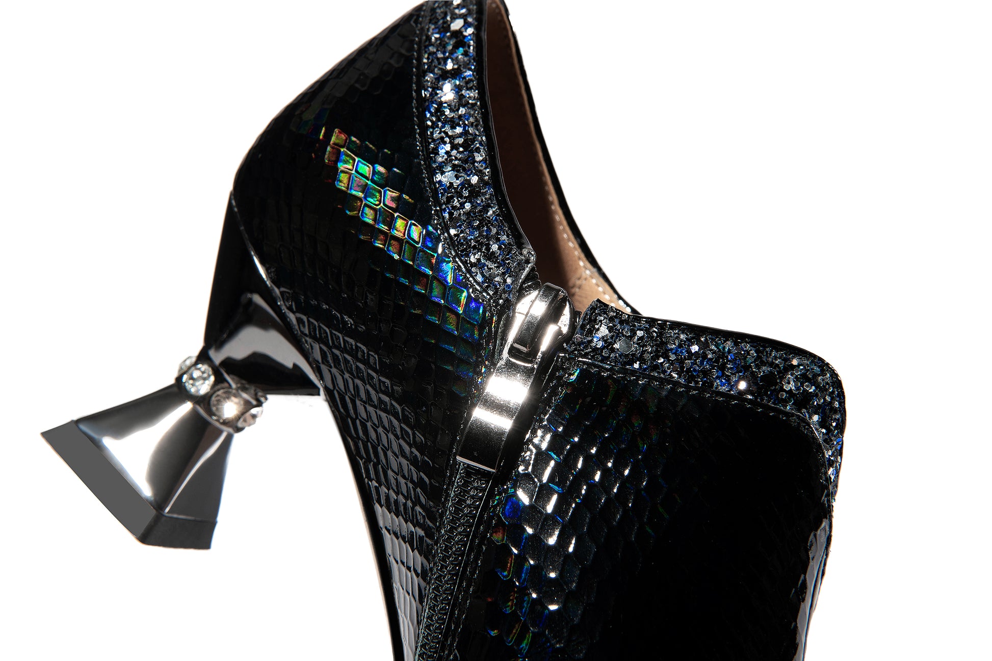 TinaCus Handmade Women's Glossy Patent Leather Slip On Side Zipper Pointed Toe Low Spool Heel Pumps Shoes
