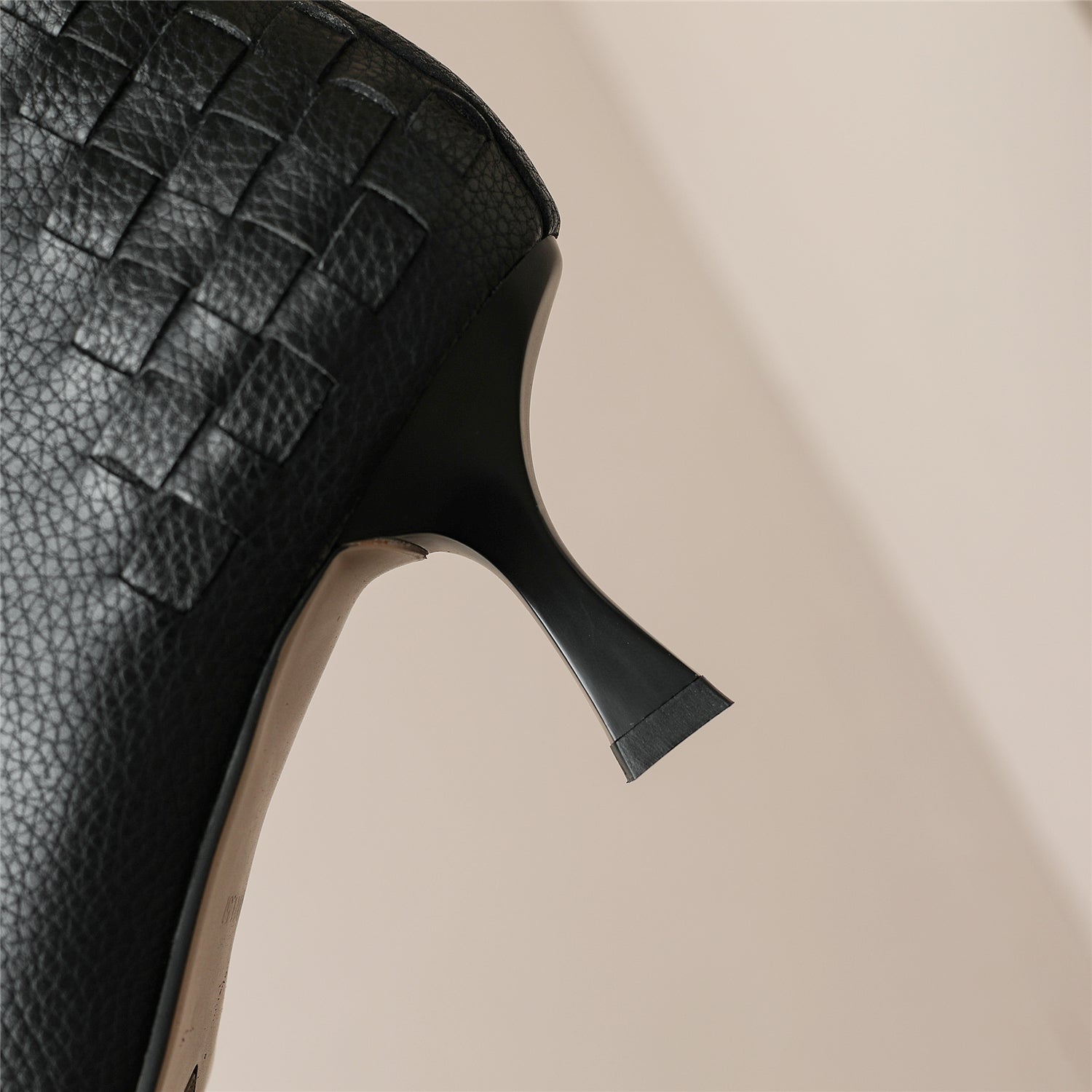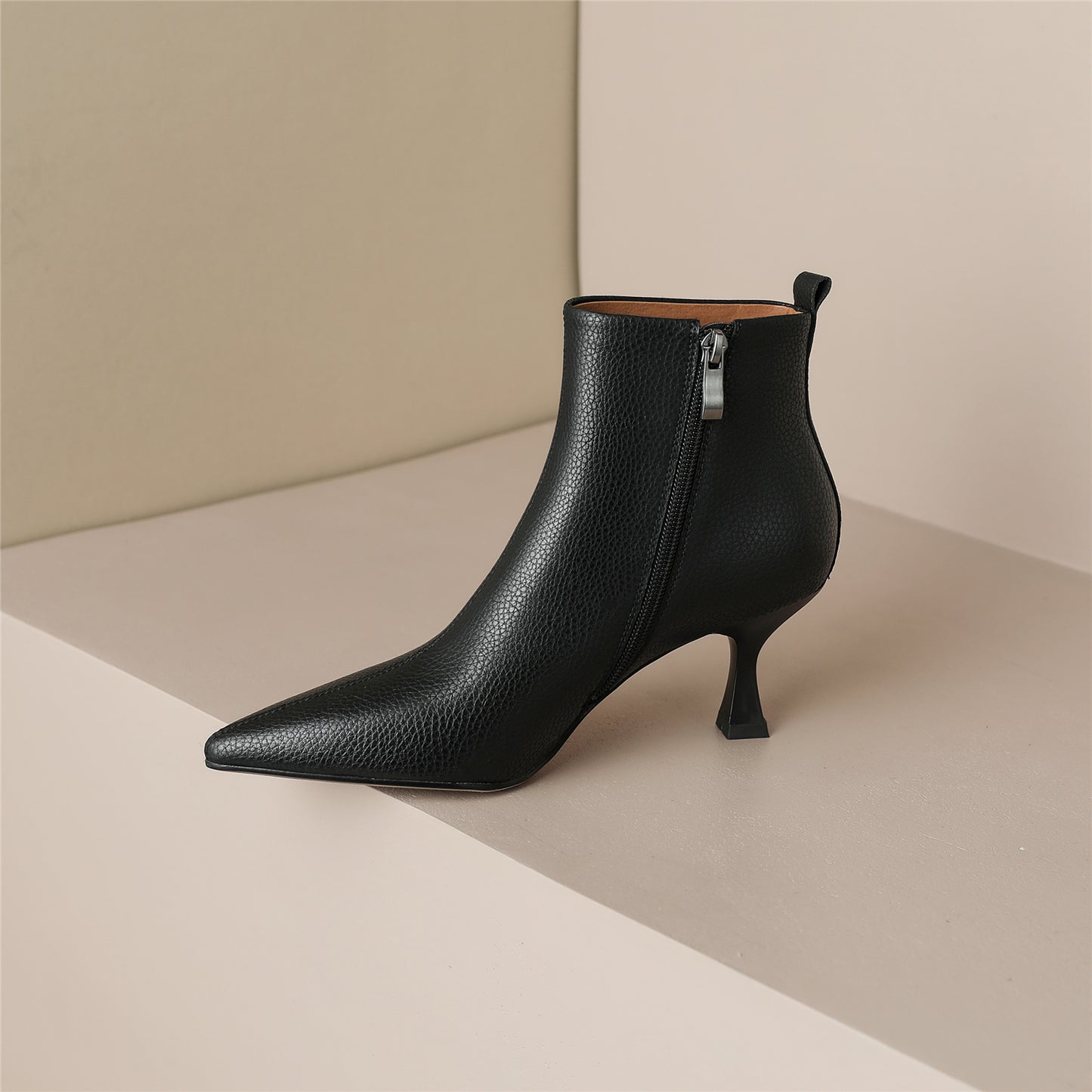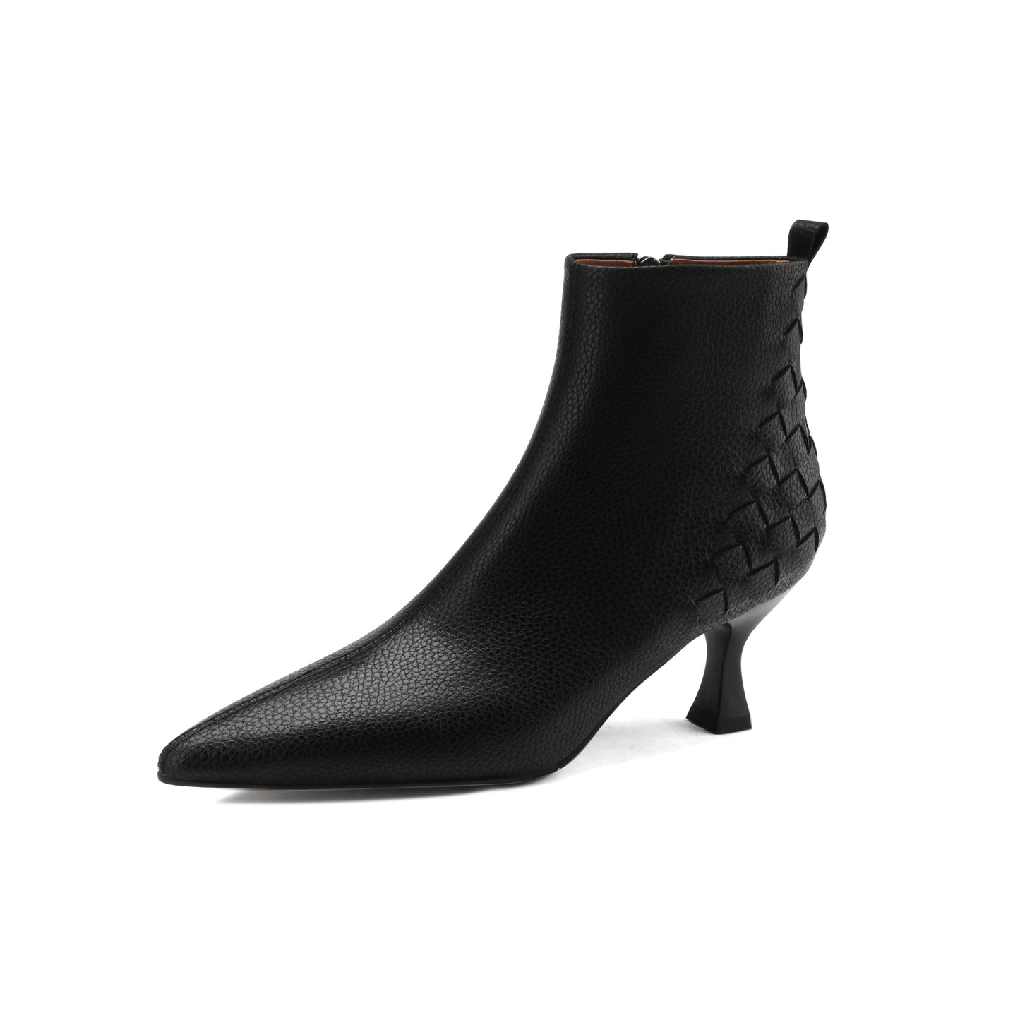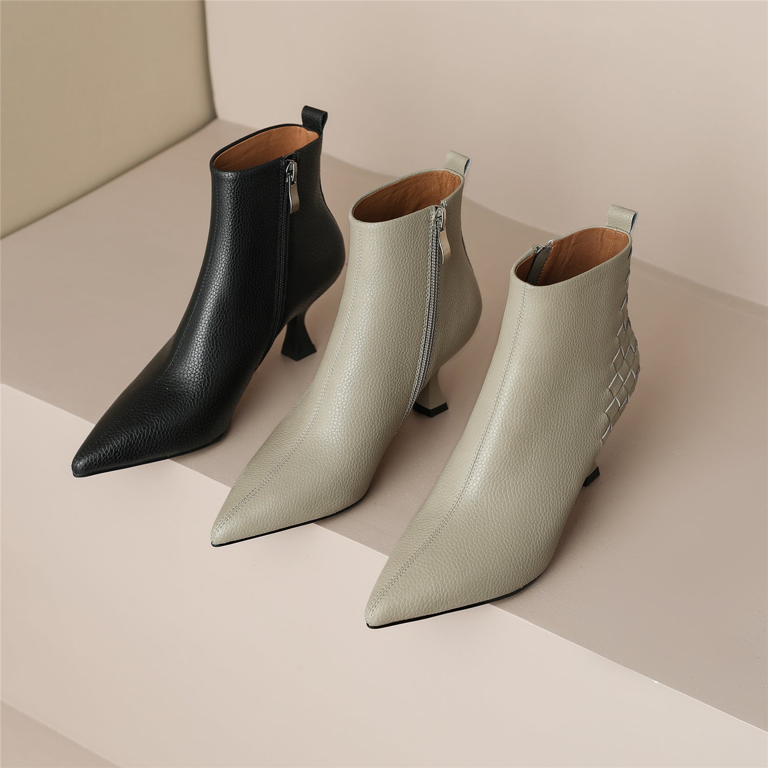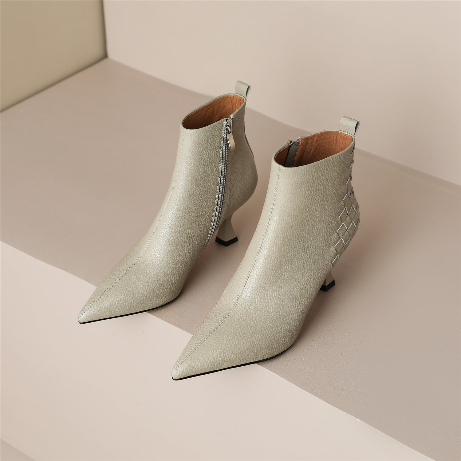 TinaCus Handmade Women's Genuine Leather Braided Pointed Toe Side Zip Up Mid Kitten Heel Fashion Ankle Boots