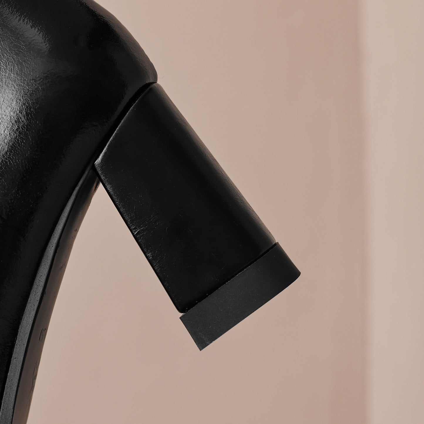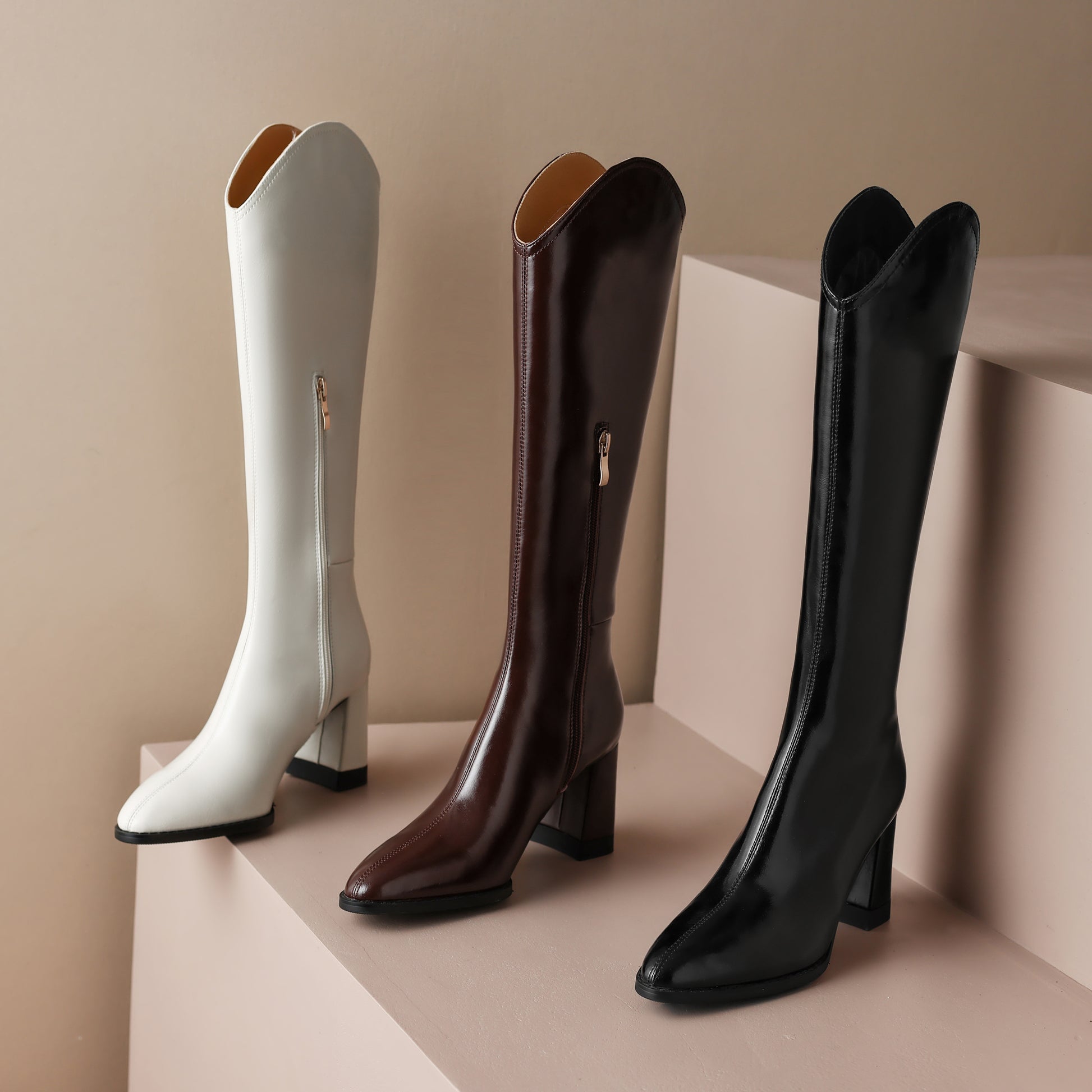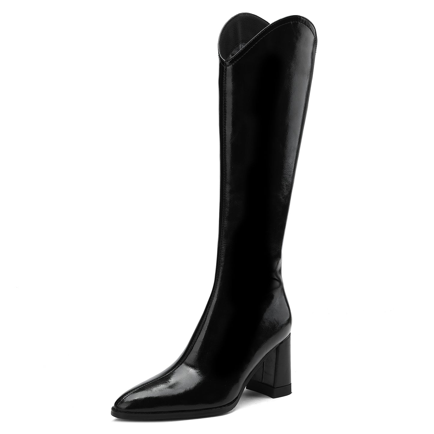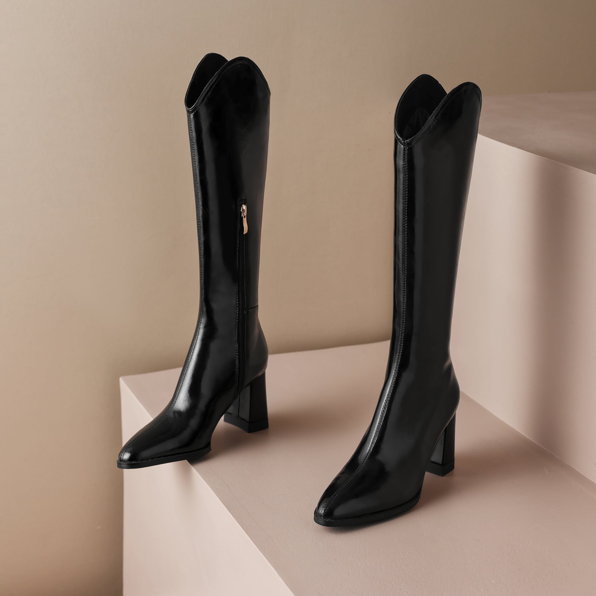TinaCus Handmade Women's Genuine Leather Pointed Toe Half Zip Chunky Heel Knee High Boots