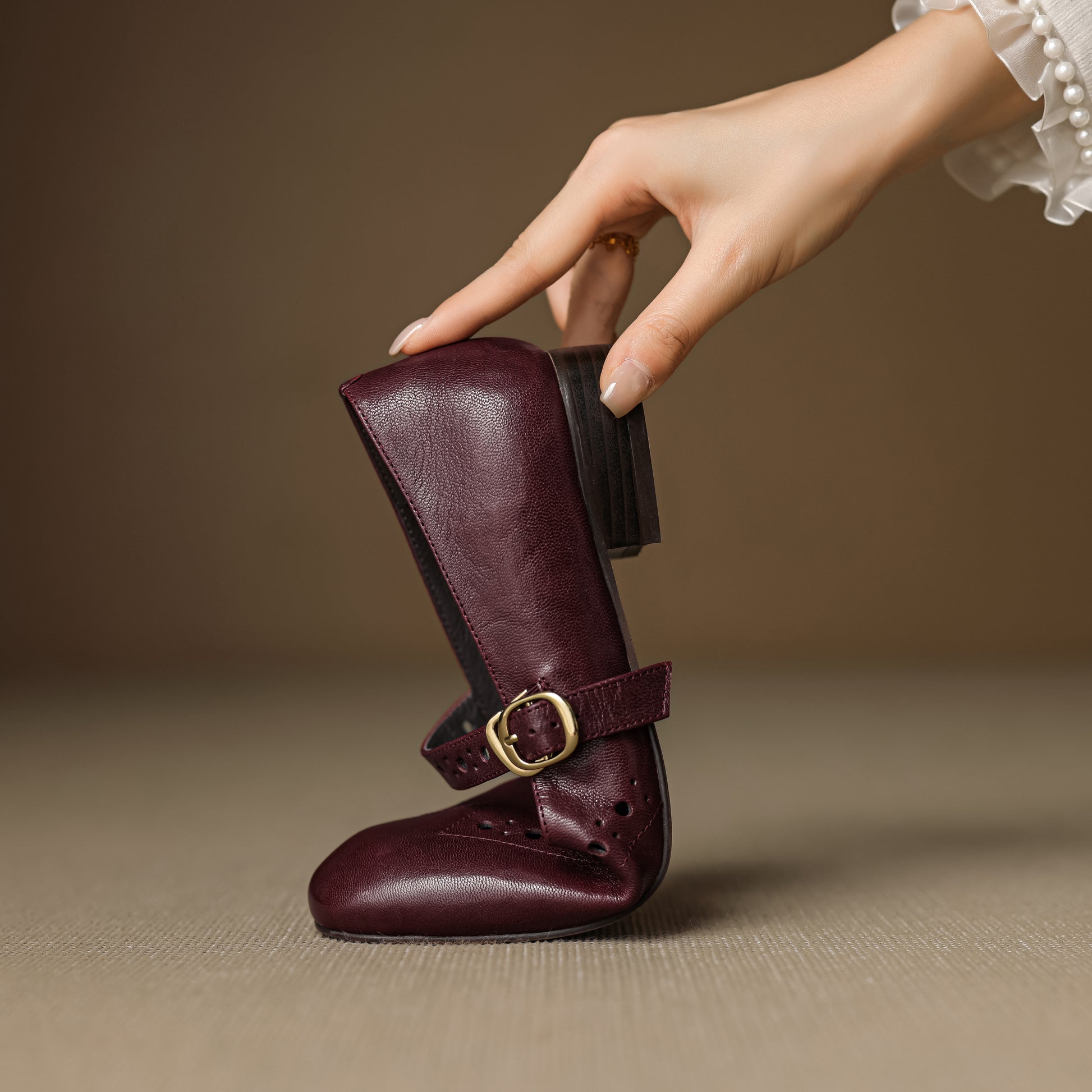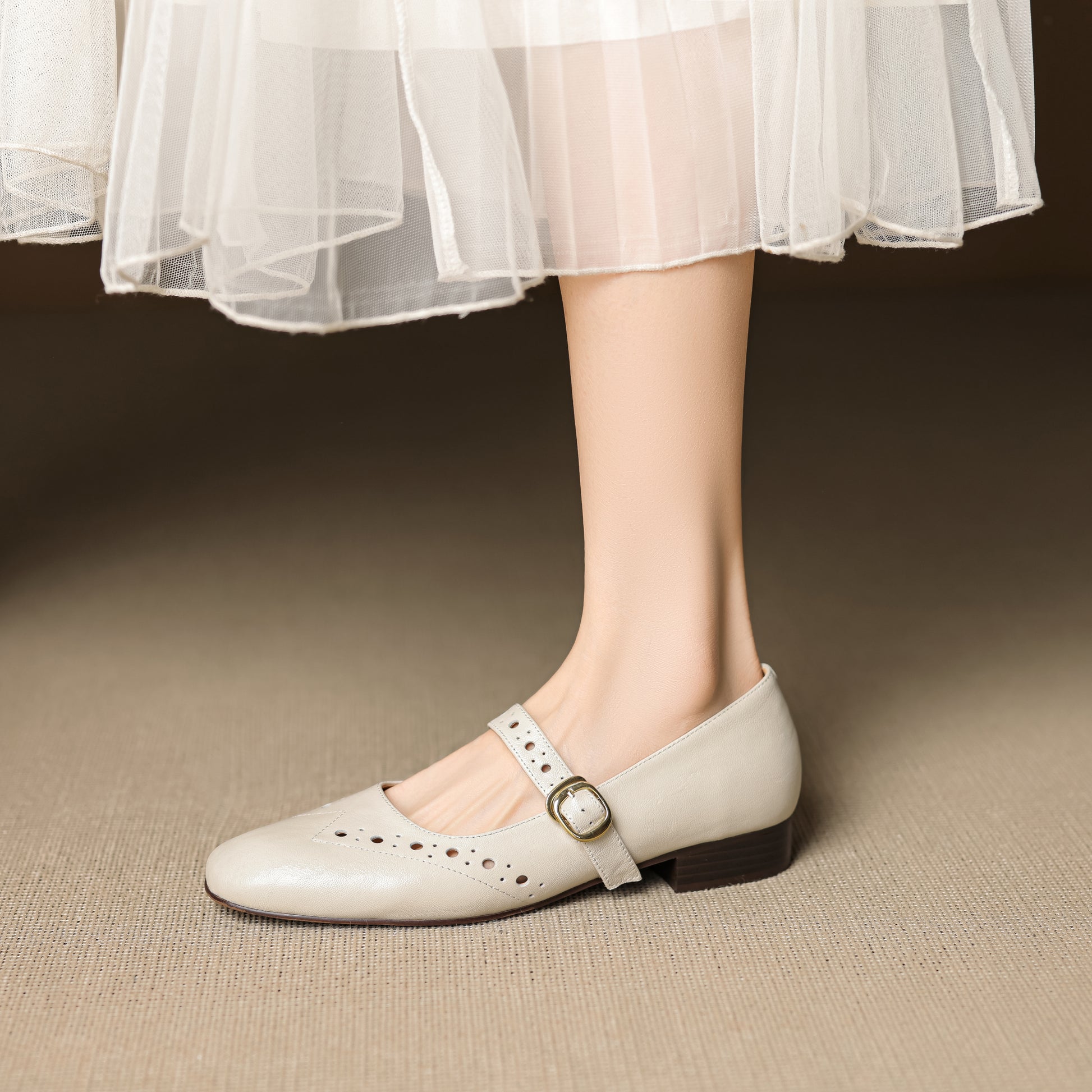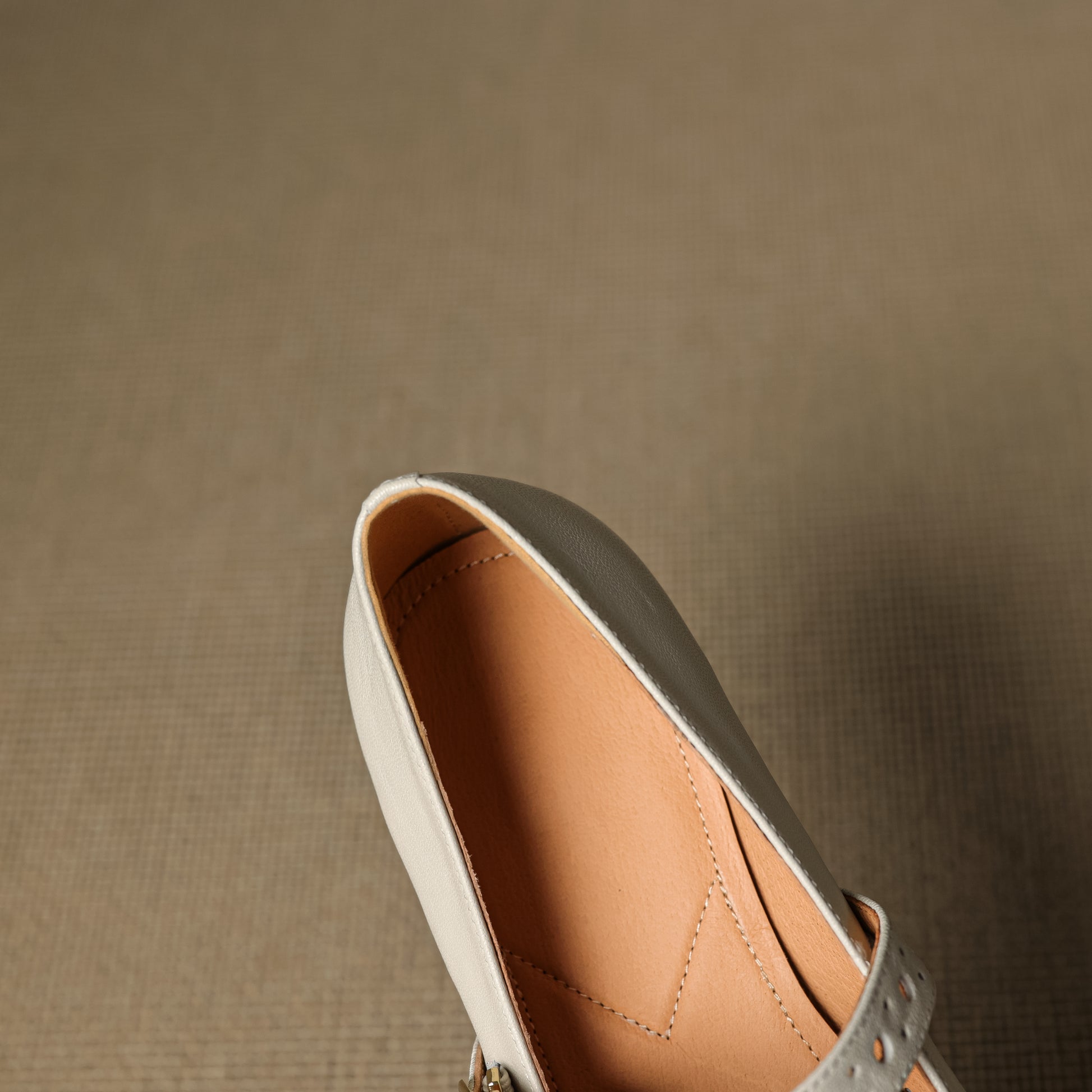 TinaCus Handmade Women's Genuine Leather Round Toe Perforated Ballet Flats with Adjustable Buckle