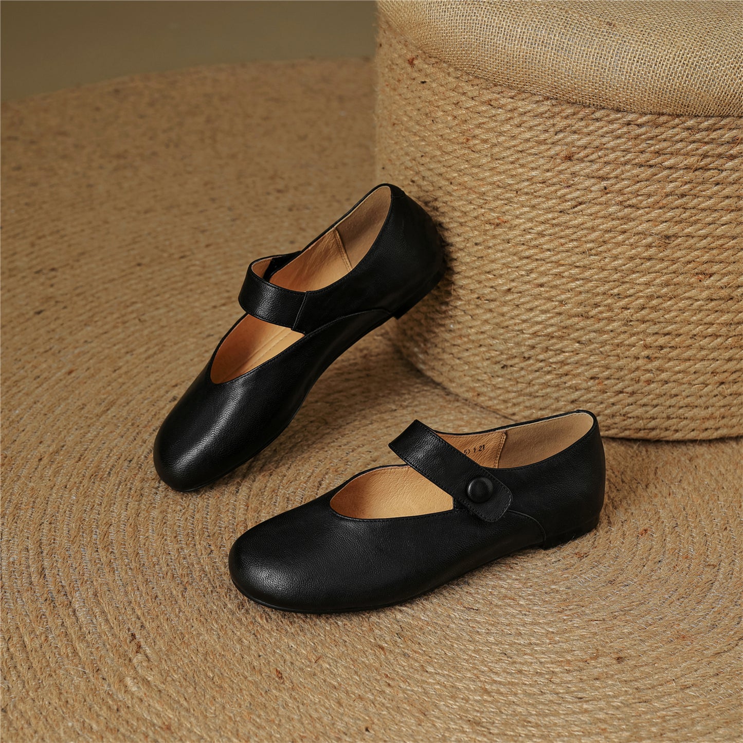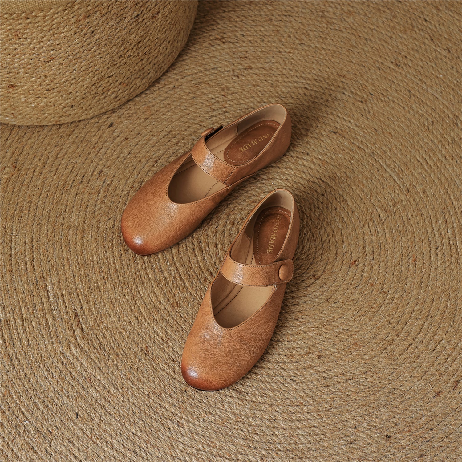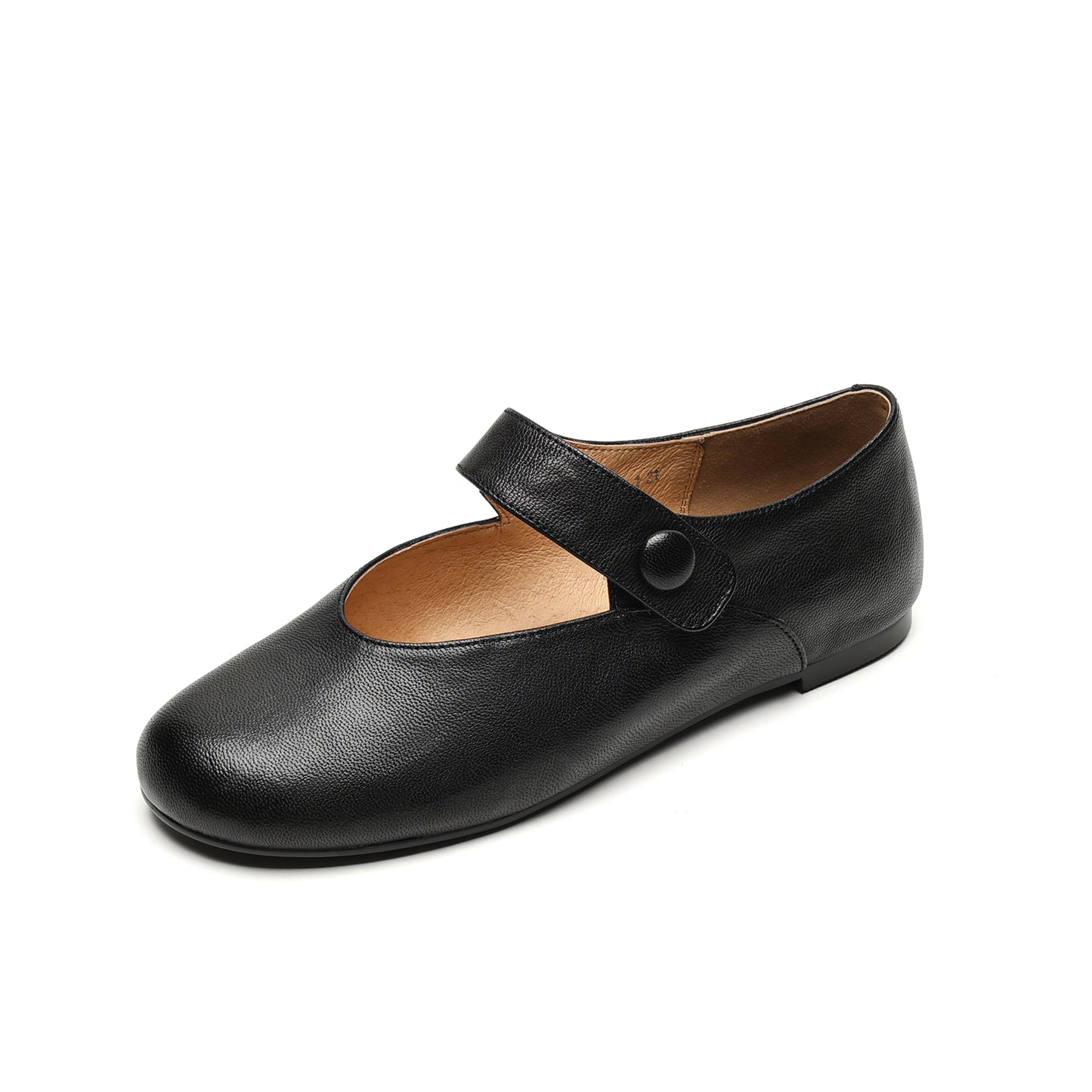 TinaCus Women Genuine Leather Handmade Round Toe Buckle Mary Jane Flats Shoes
