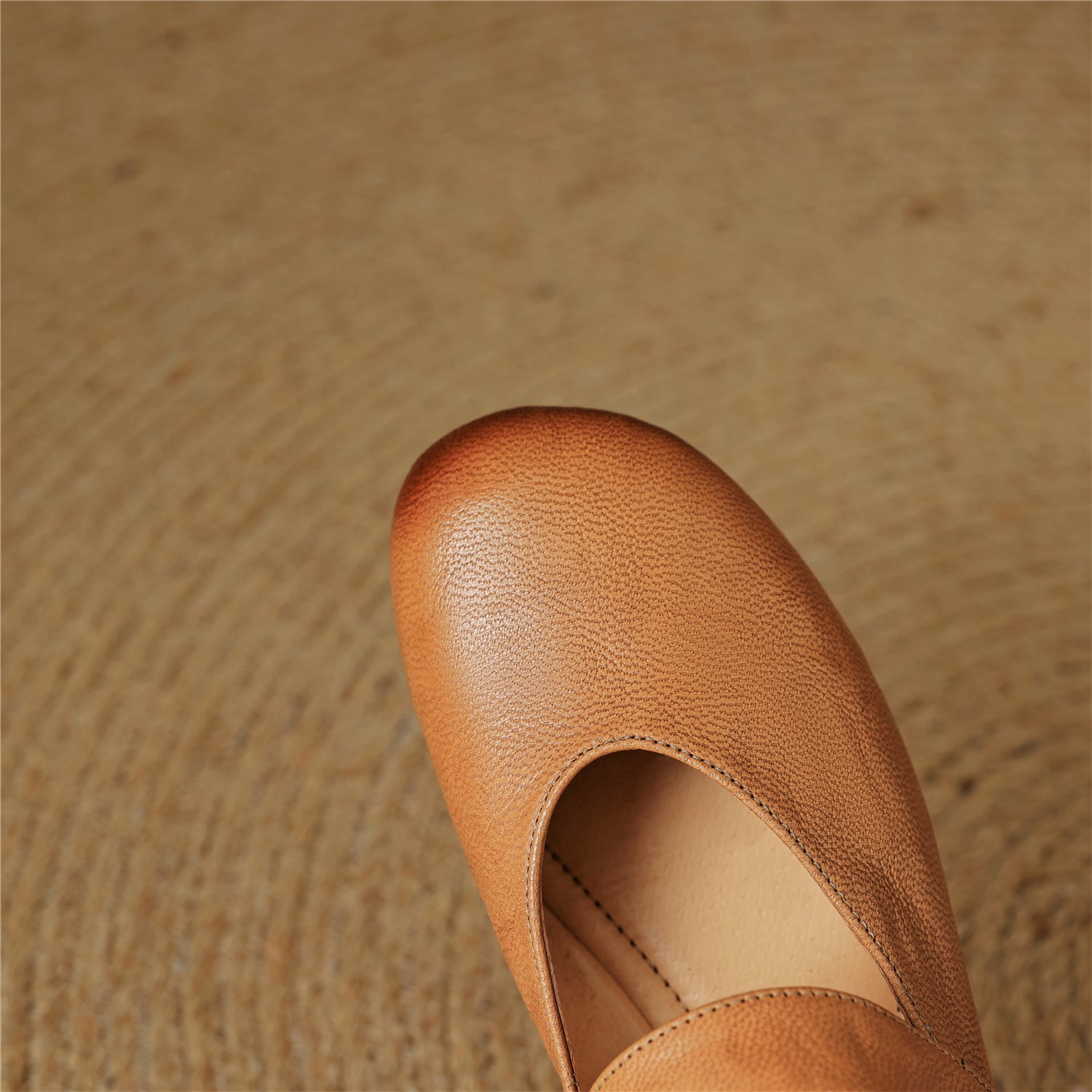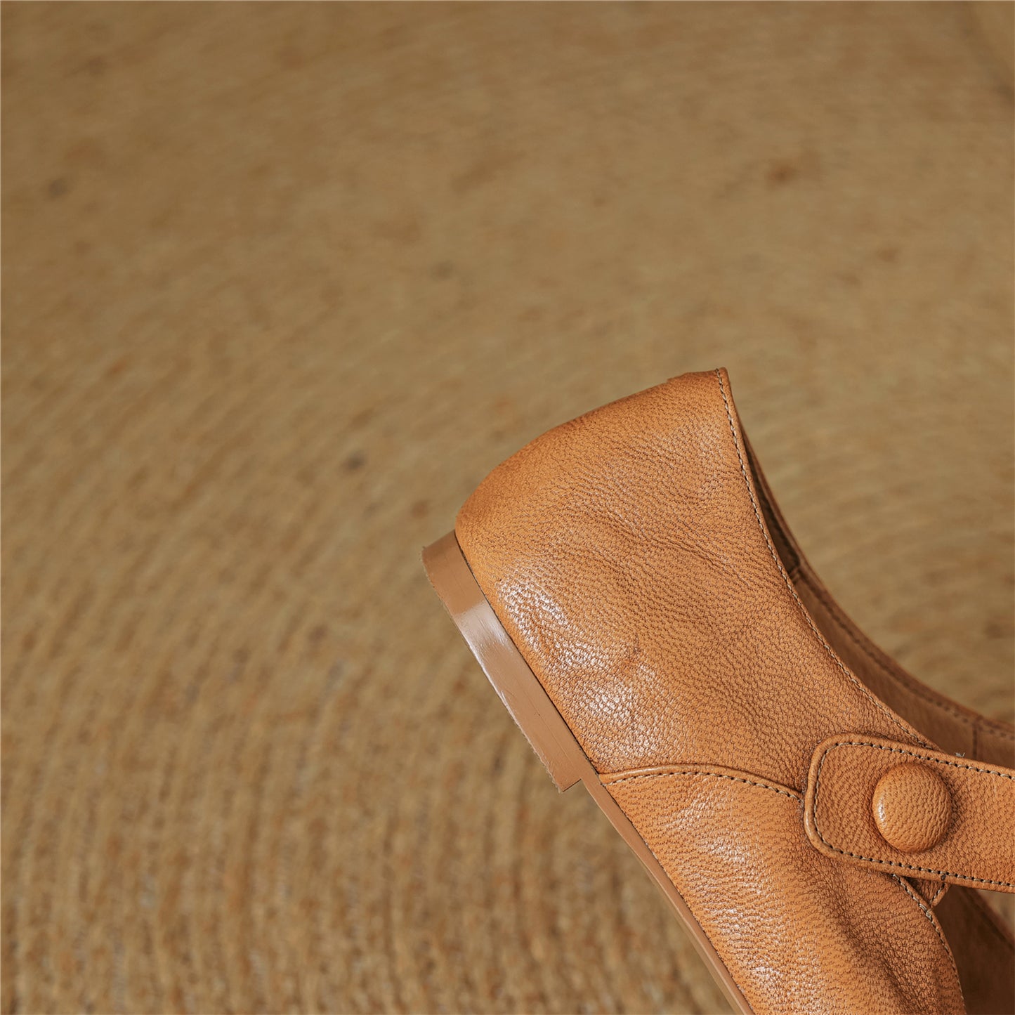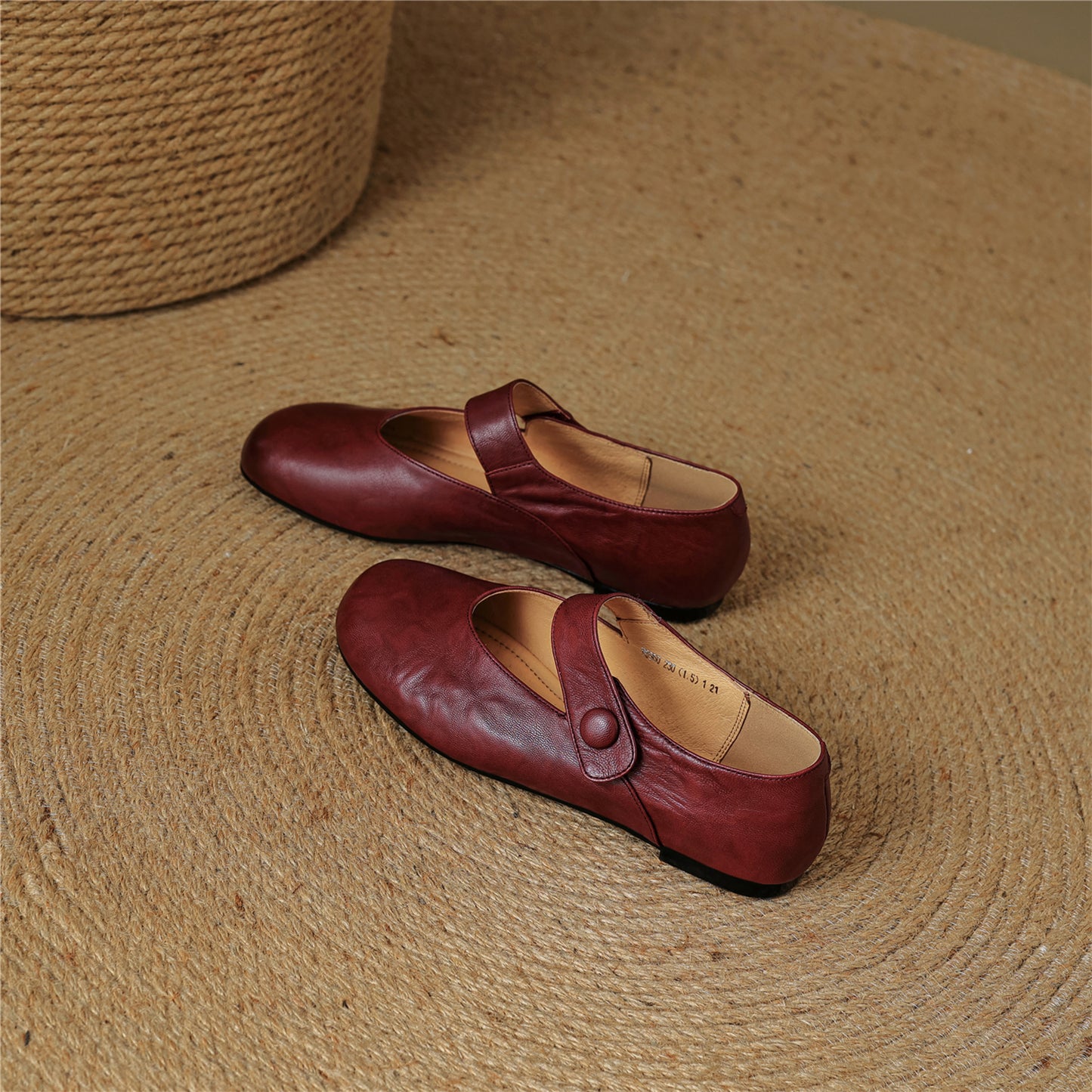 TinaCus Women Genuine Leather Handmade Round Toe Buckle Mary Jane Flats Shoes