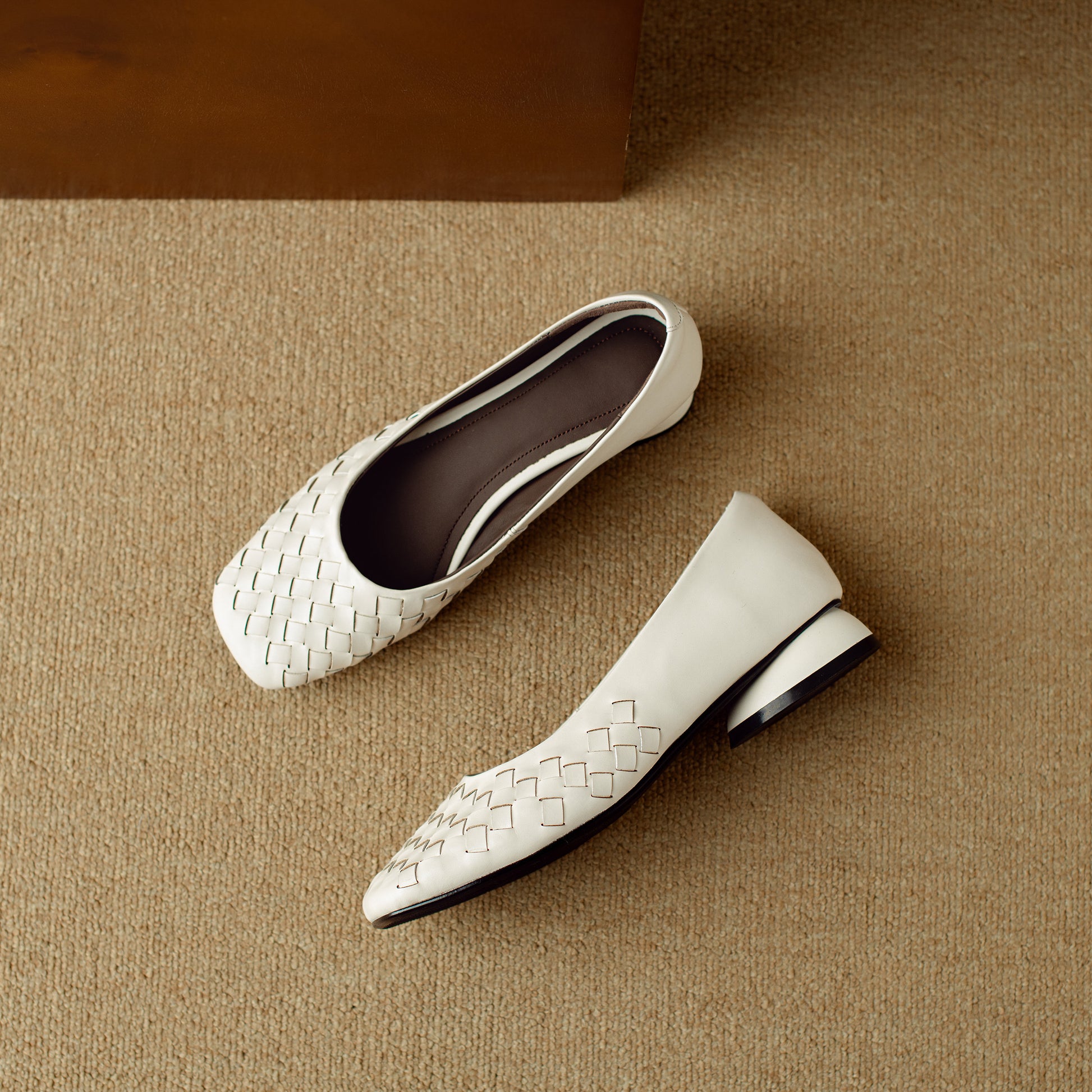 TinaCus Women's Genuine Leather Comfortable Weave Square Toe Slip On Casual Flats Dressy Shoes