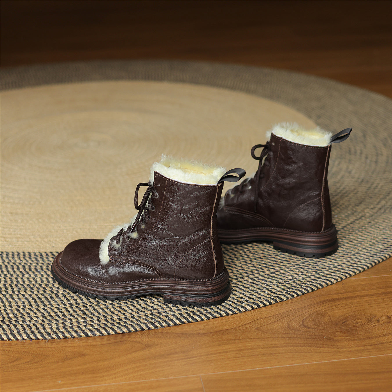 TinaCus Women's Genuine Leather Fur Lace Up Chunky Heel Handmade Ankle Boots