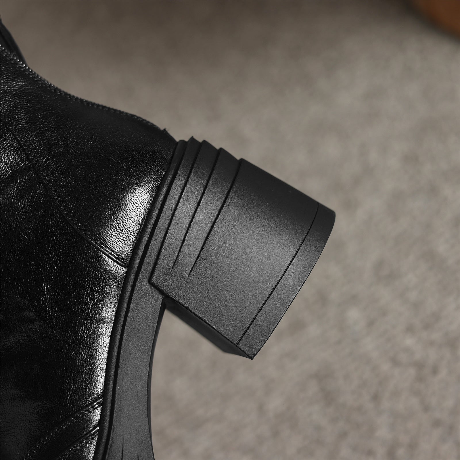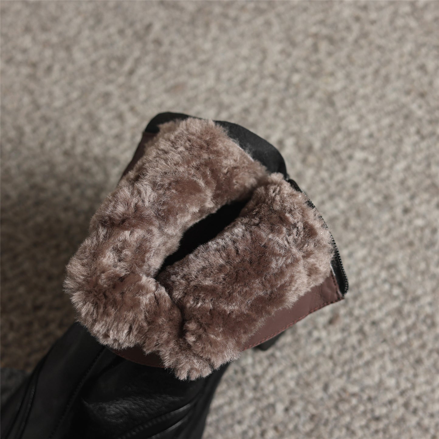 TinaCus Women's Genuine Leather Handmade Fur Inner Block Heel Back Zipper Ankle Boots