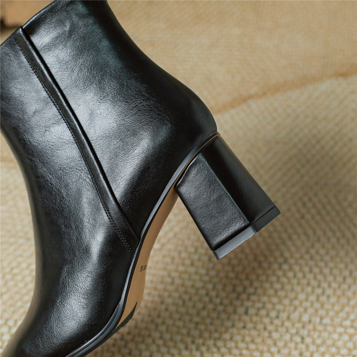 TinaCus Women's Genuine Leather Chunky Heel Handmade Side Zipper Ankle Boots