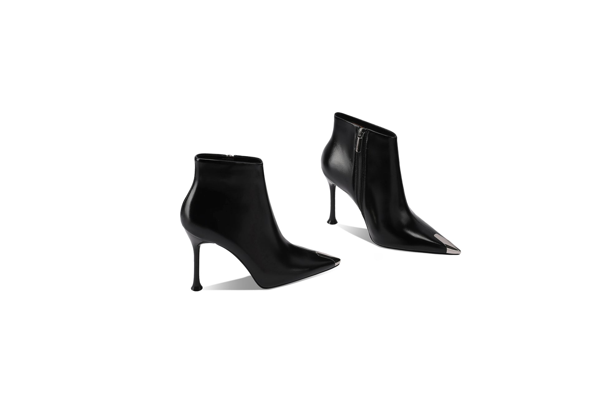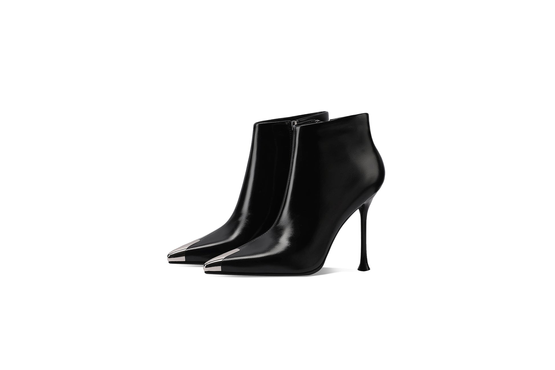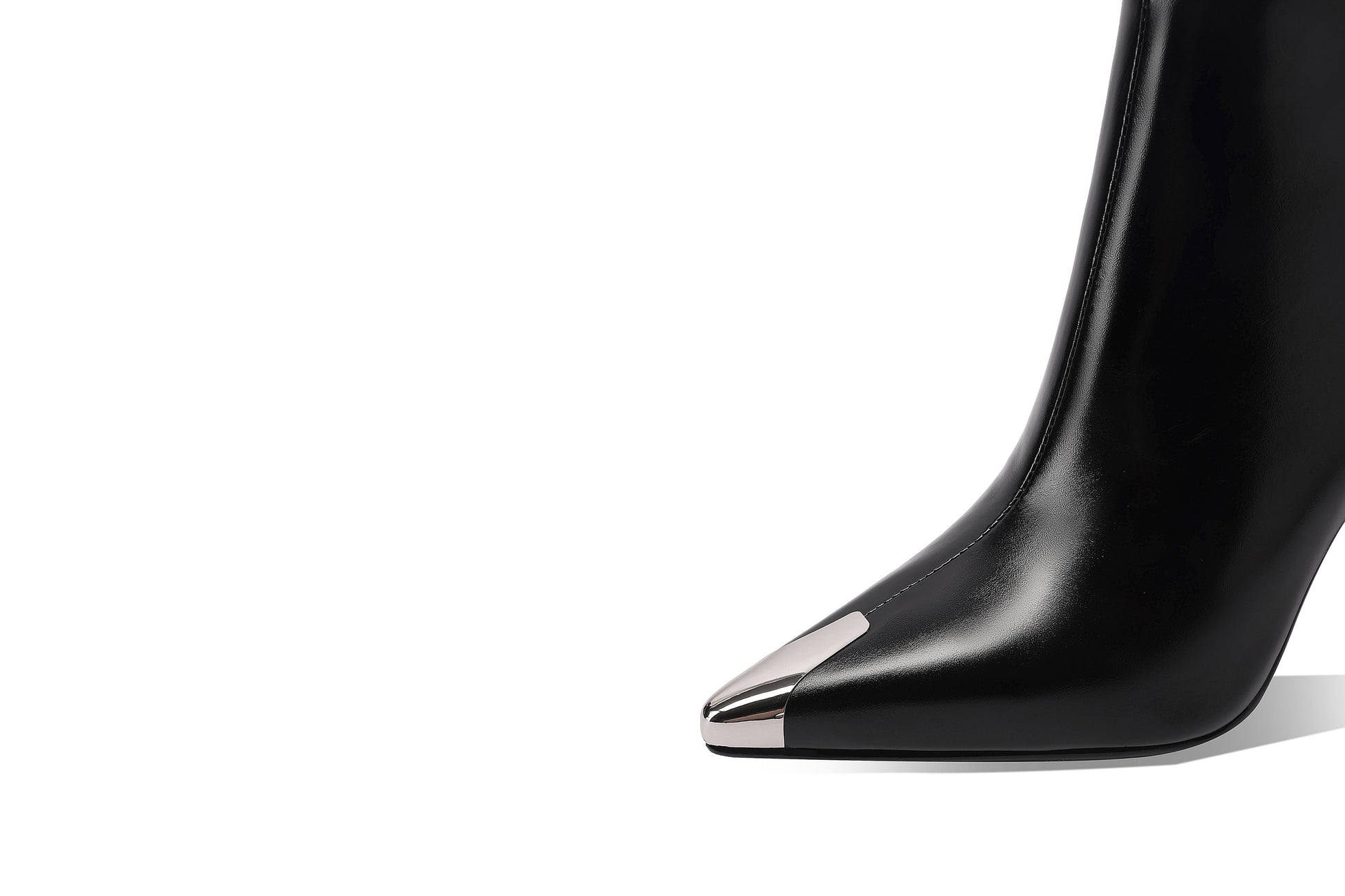 TinaCus Women's Genuine Leather Handmade Metal Toe Stiletto Heel Side Zip Up Ankle Boots