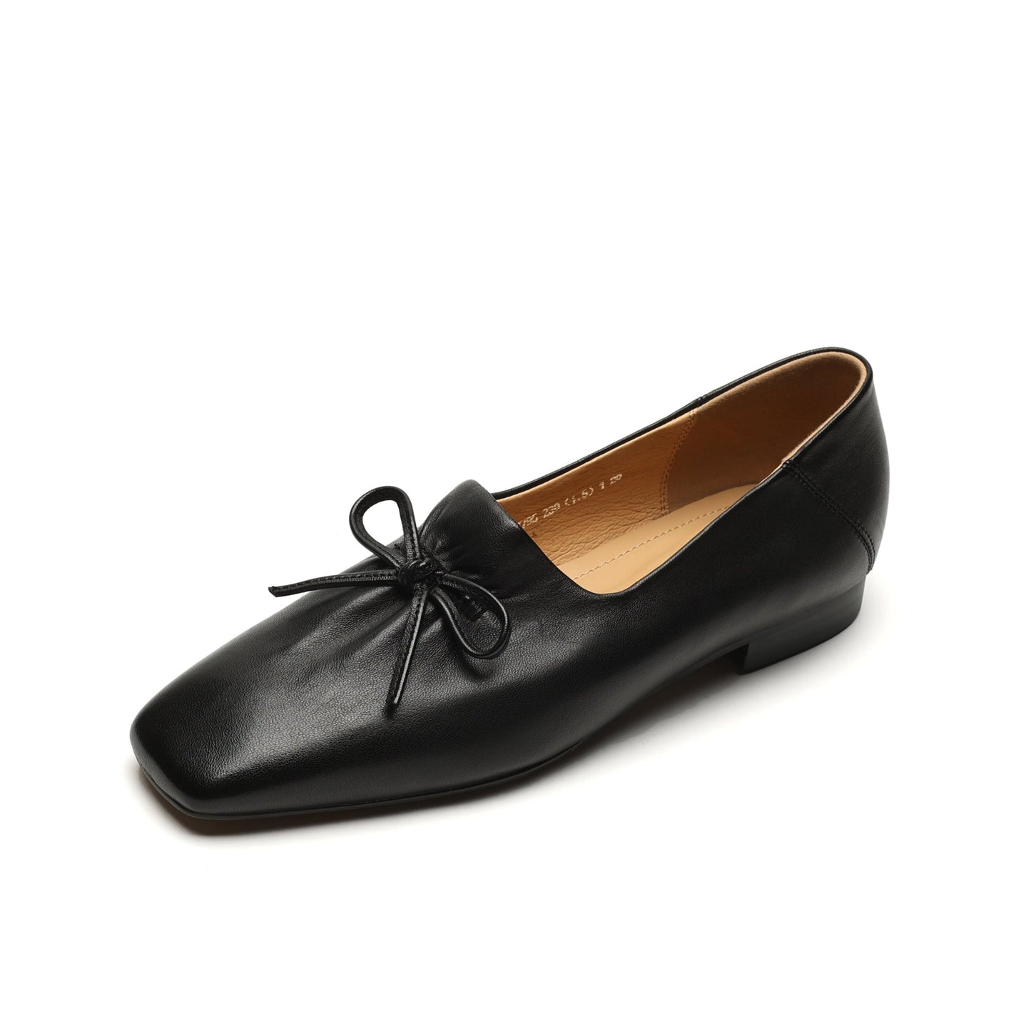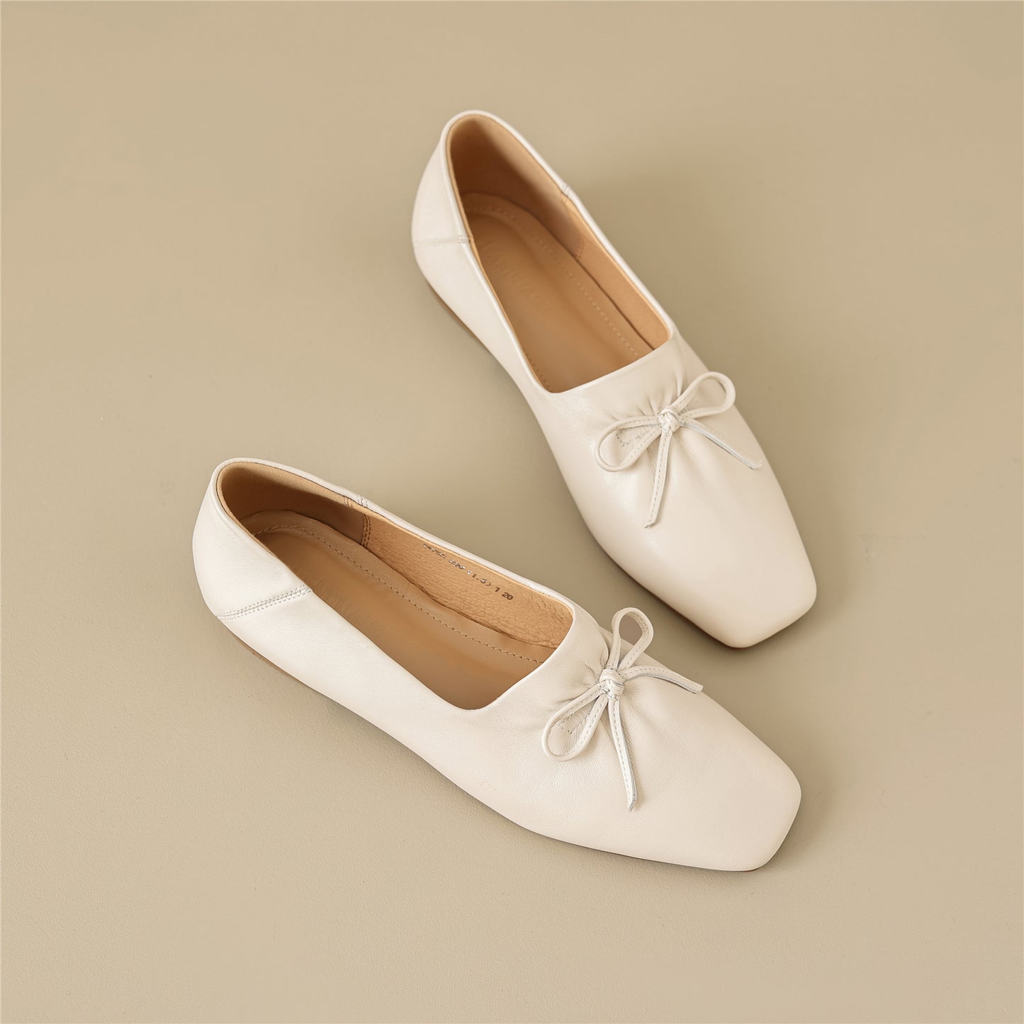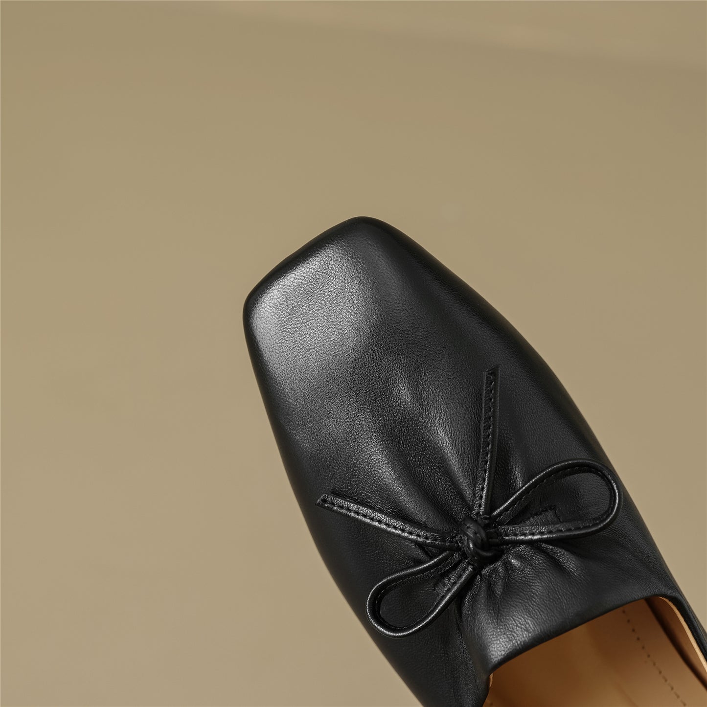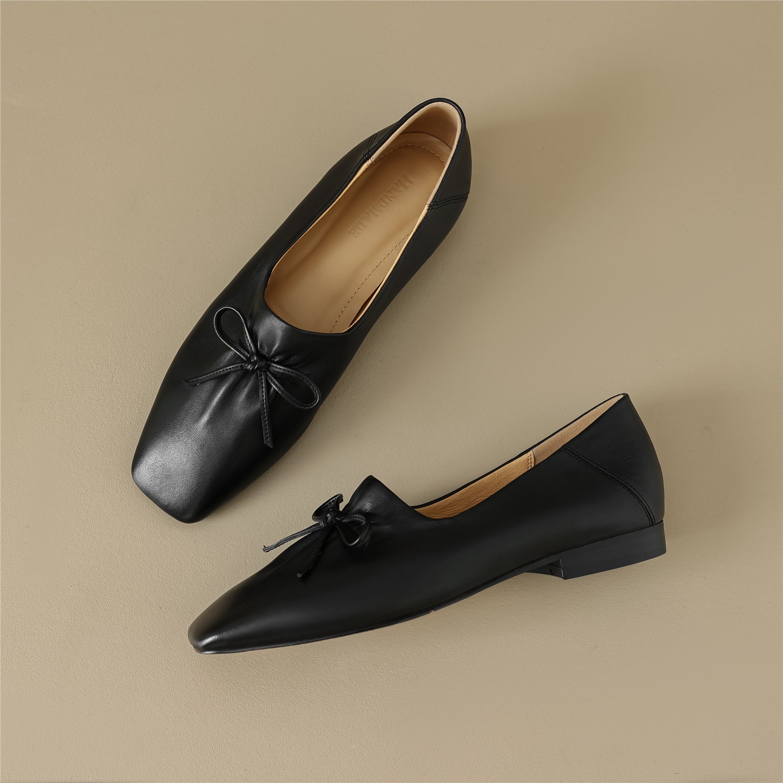TinaCus Women's Genuine Leather Handmade Square Toe Bowtie Shoes