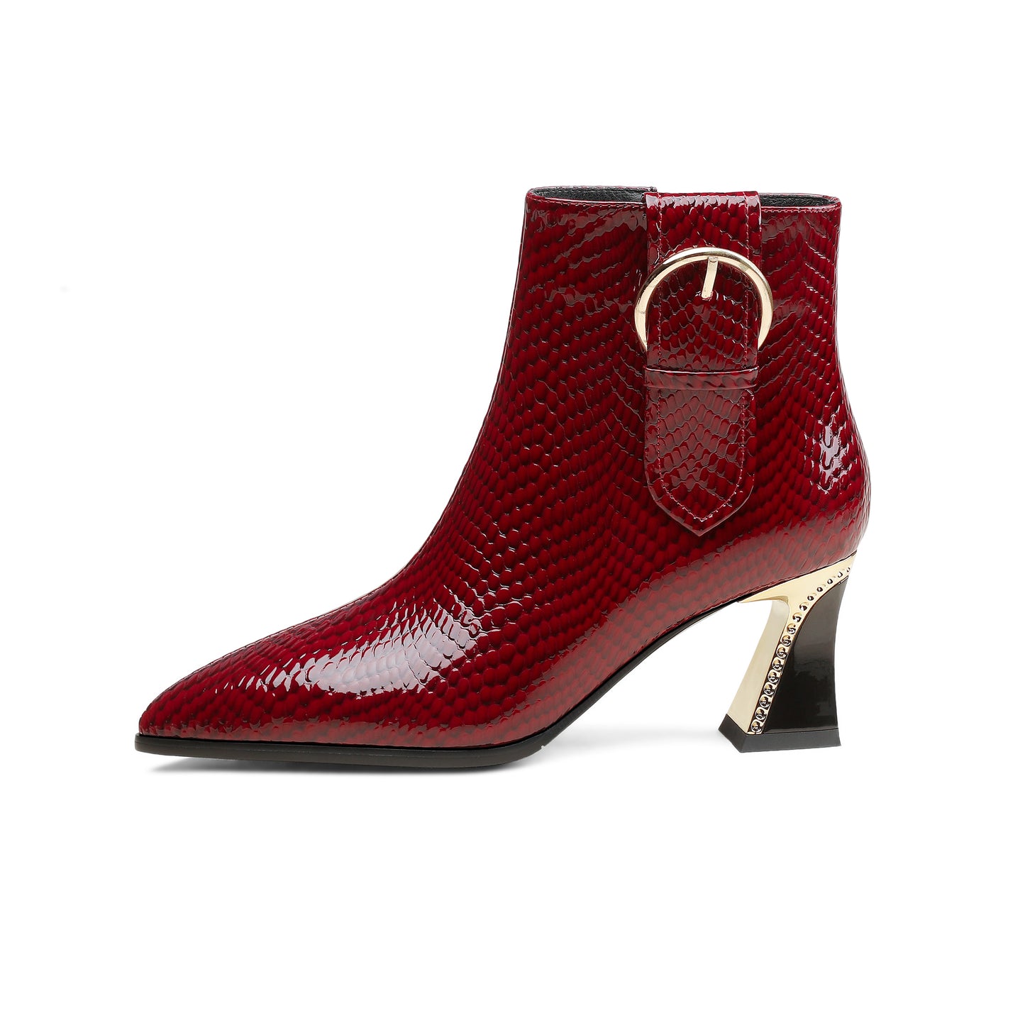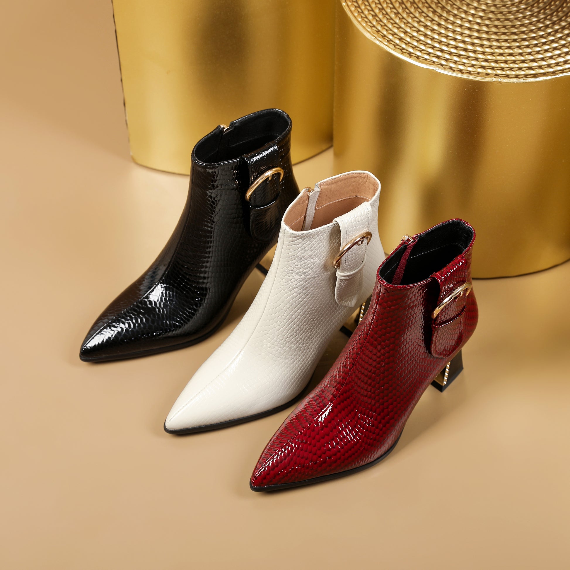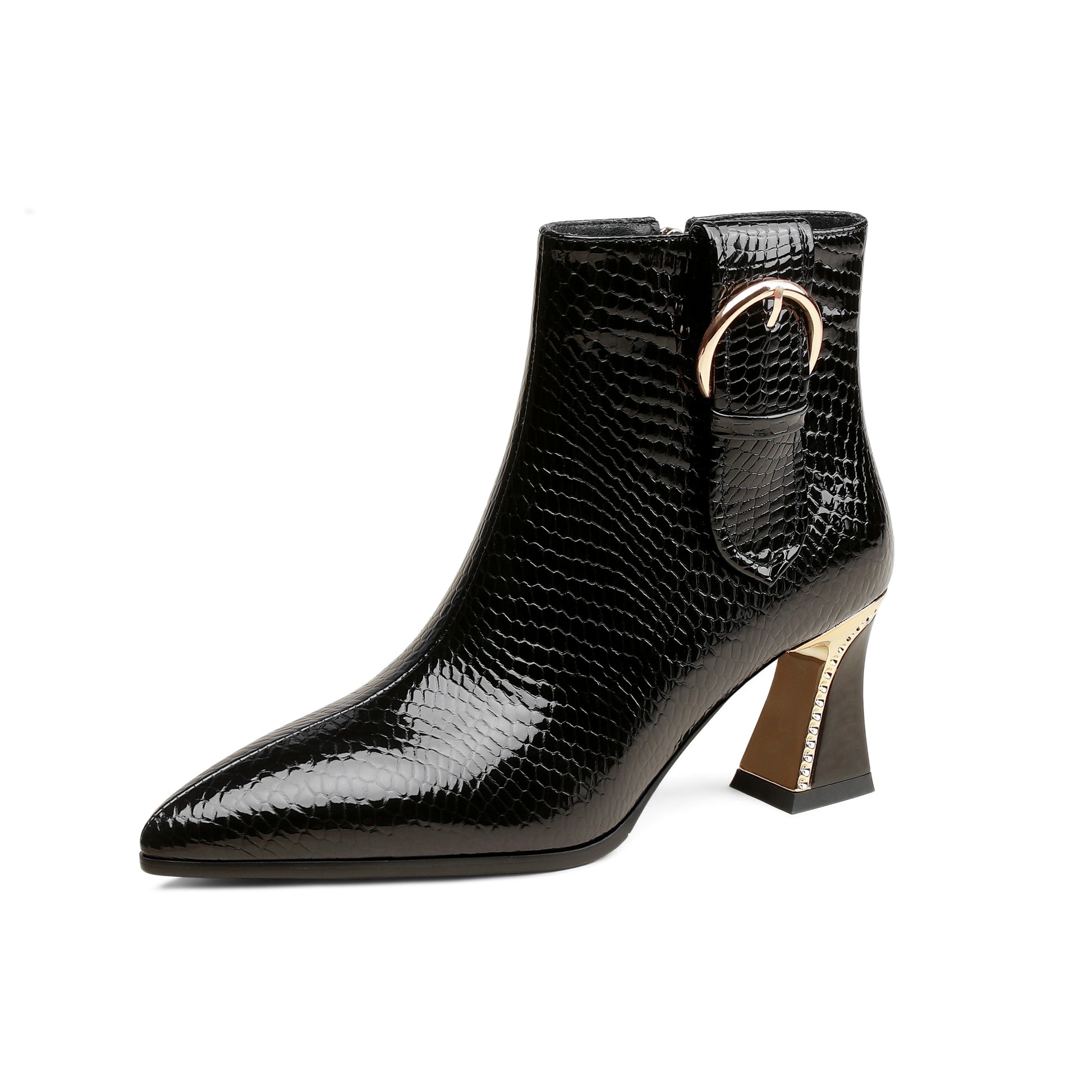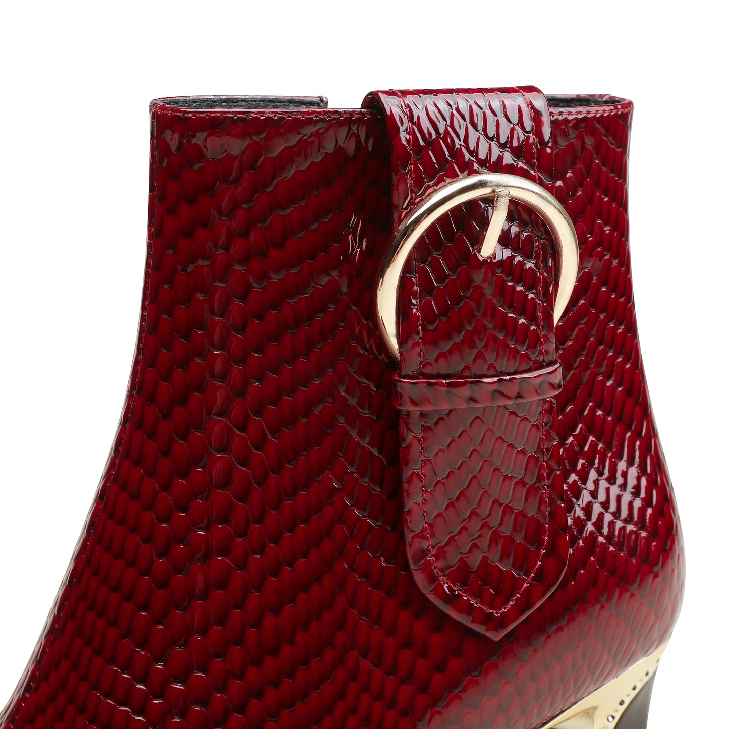 TinaCus Women's Patent Leather Pointed Toe Side Zip Up Handmade Mid Heel Modern Buckle Ankle Boots