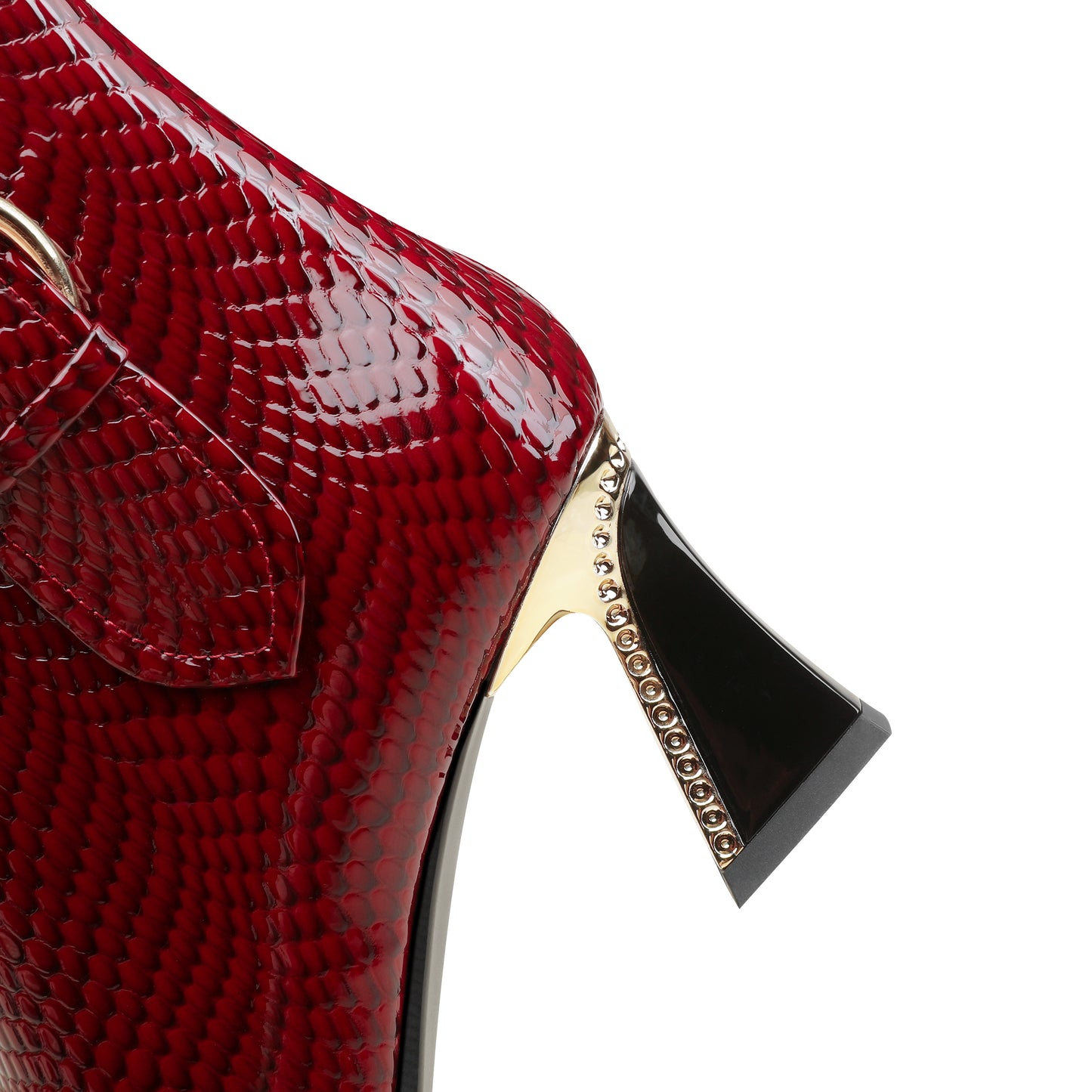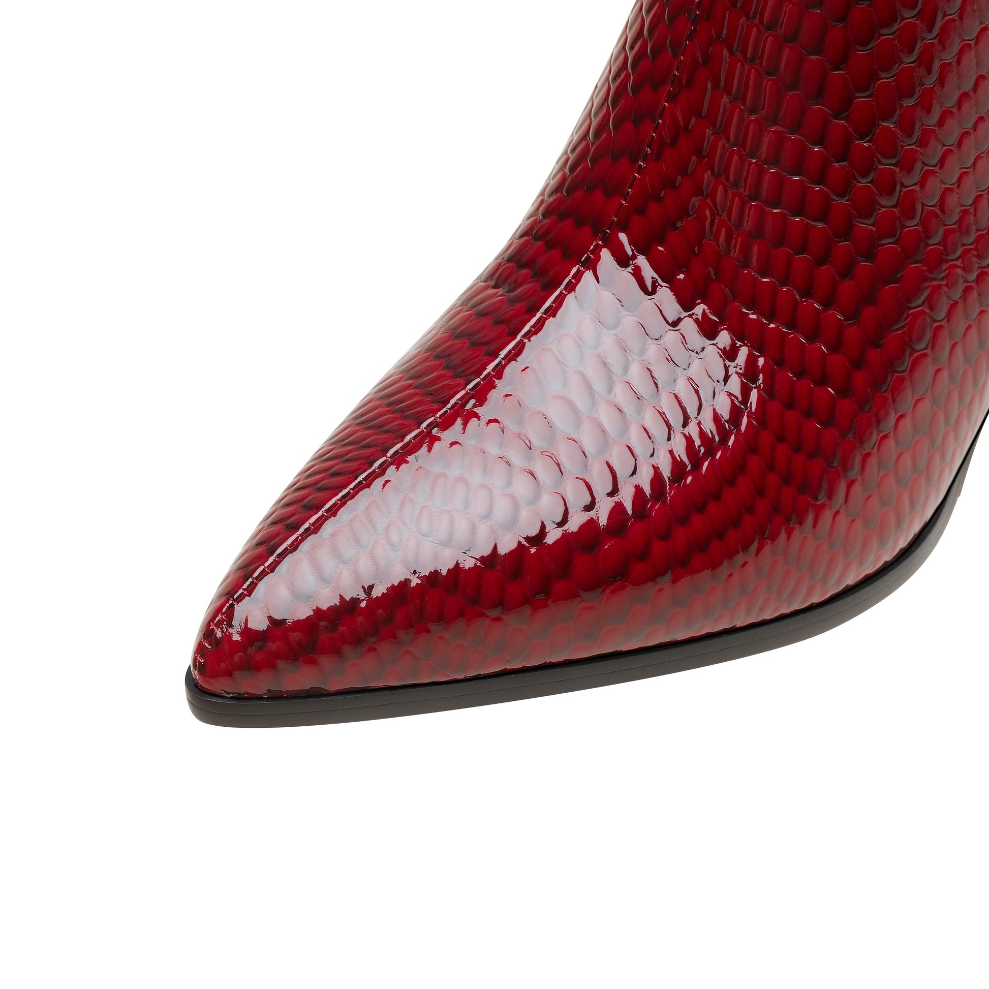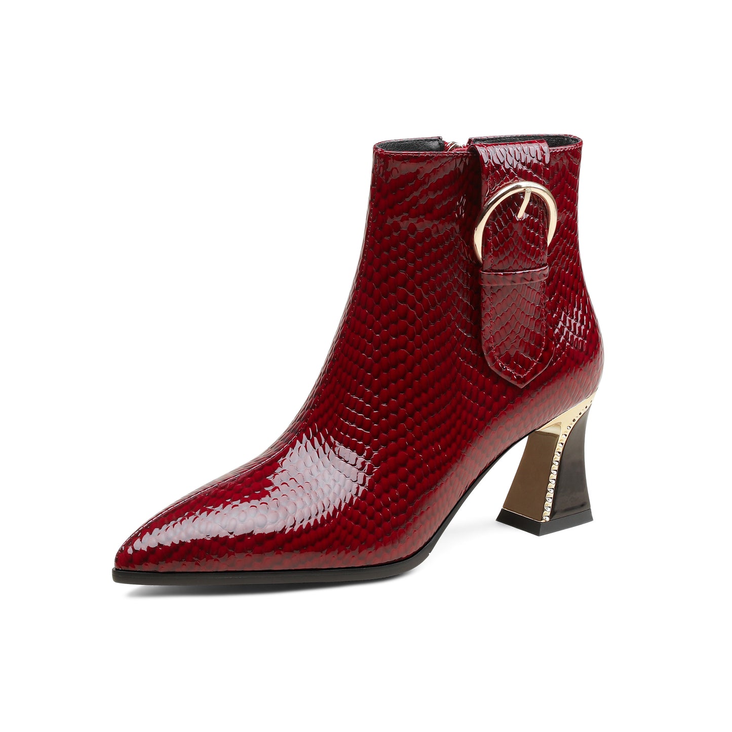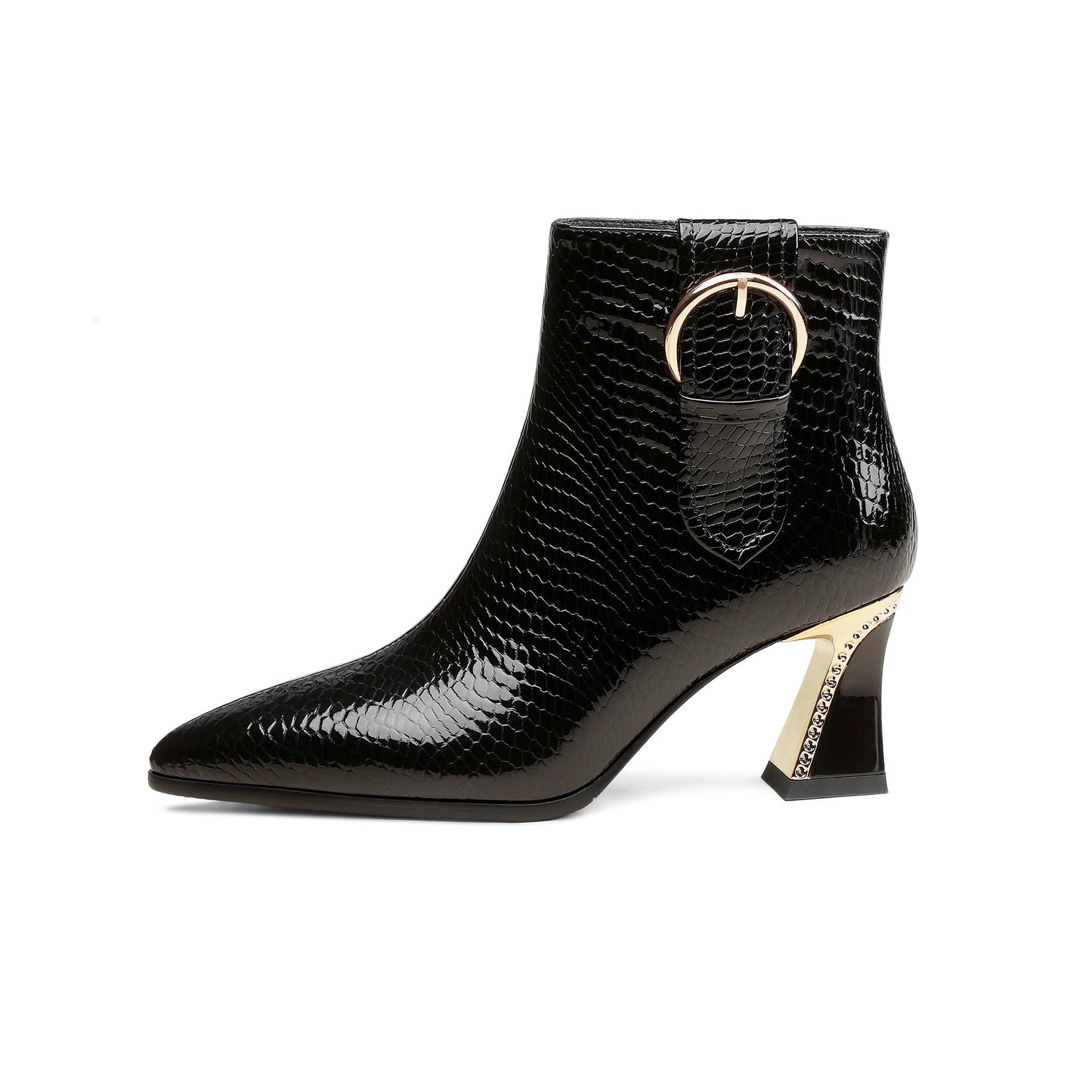 TinaCus Women's Patent Leather Pointed Toe Side Zip Up Handmade Mid Heel Modern Buckle Ankle Boots