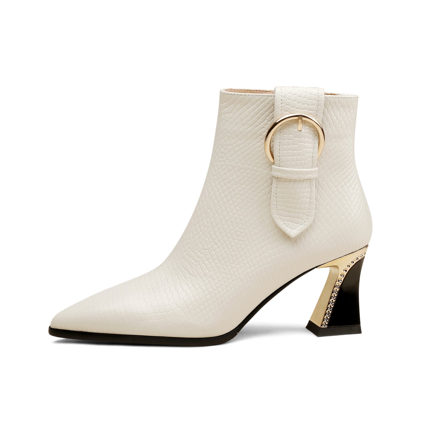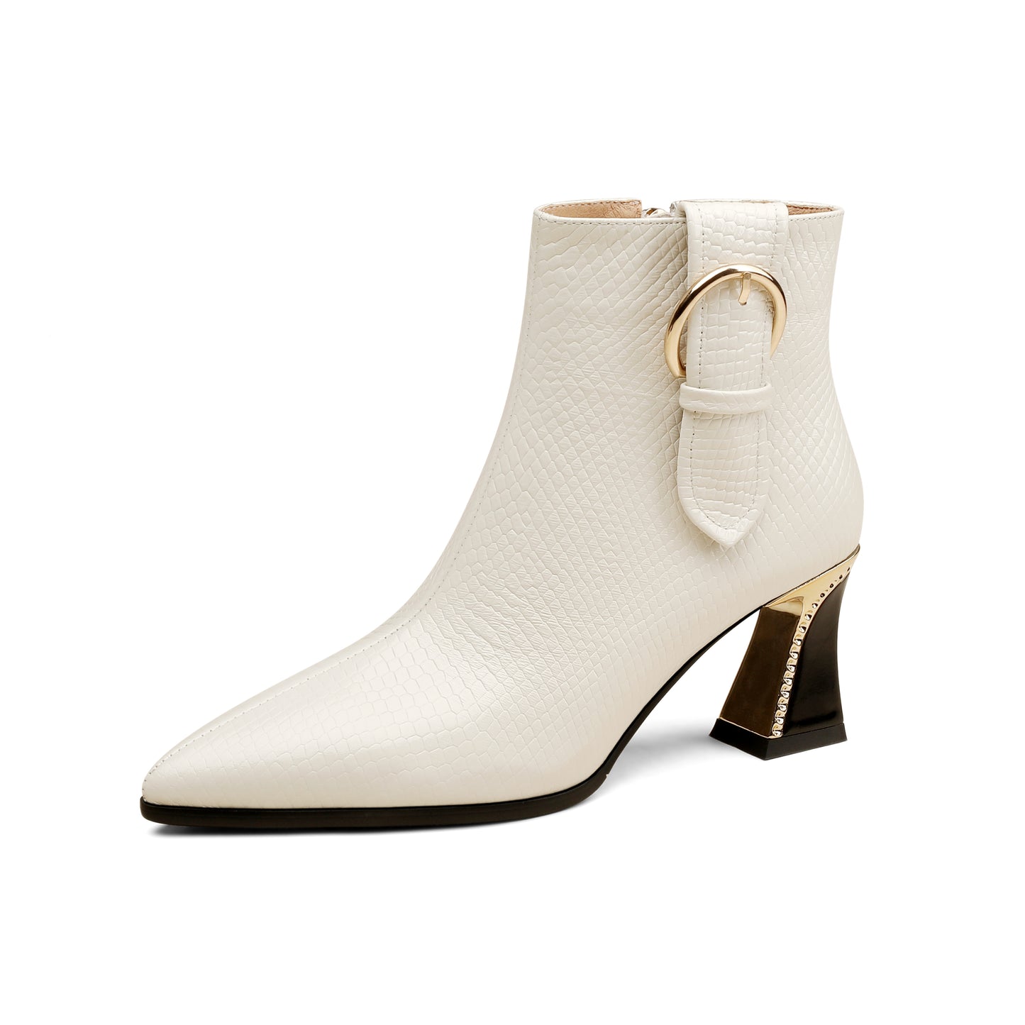 Trendy ankle boots with pointed toe, genuine leather, side zip and mid heel can go with kinds of outfits.