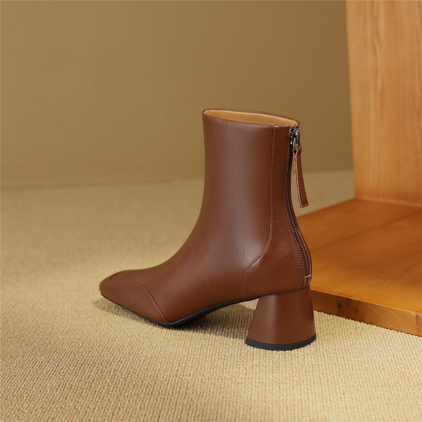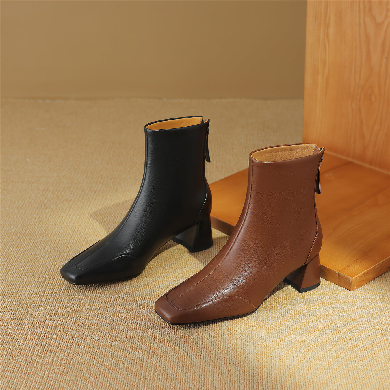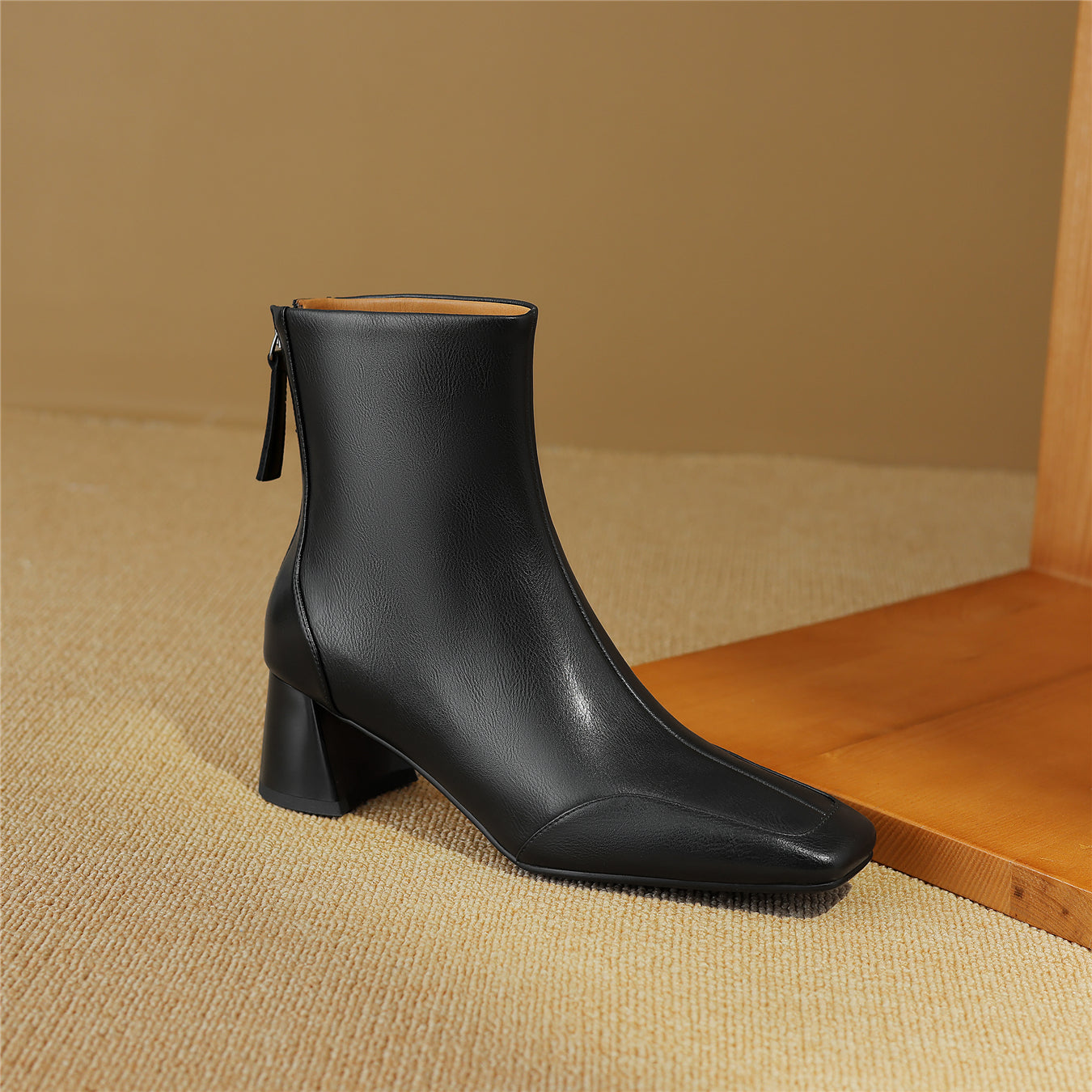 TinaCus Women's Genuine Leather Square Toe Handmade Mid Heel Back Zip Ankle Boots